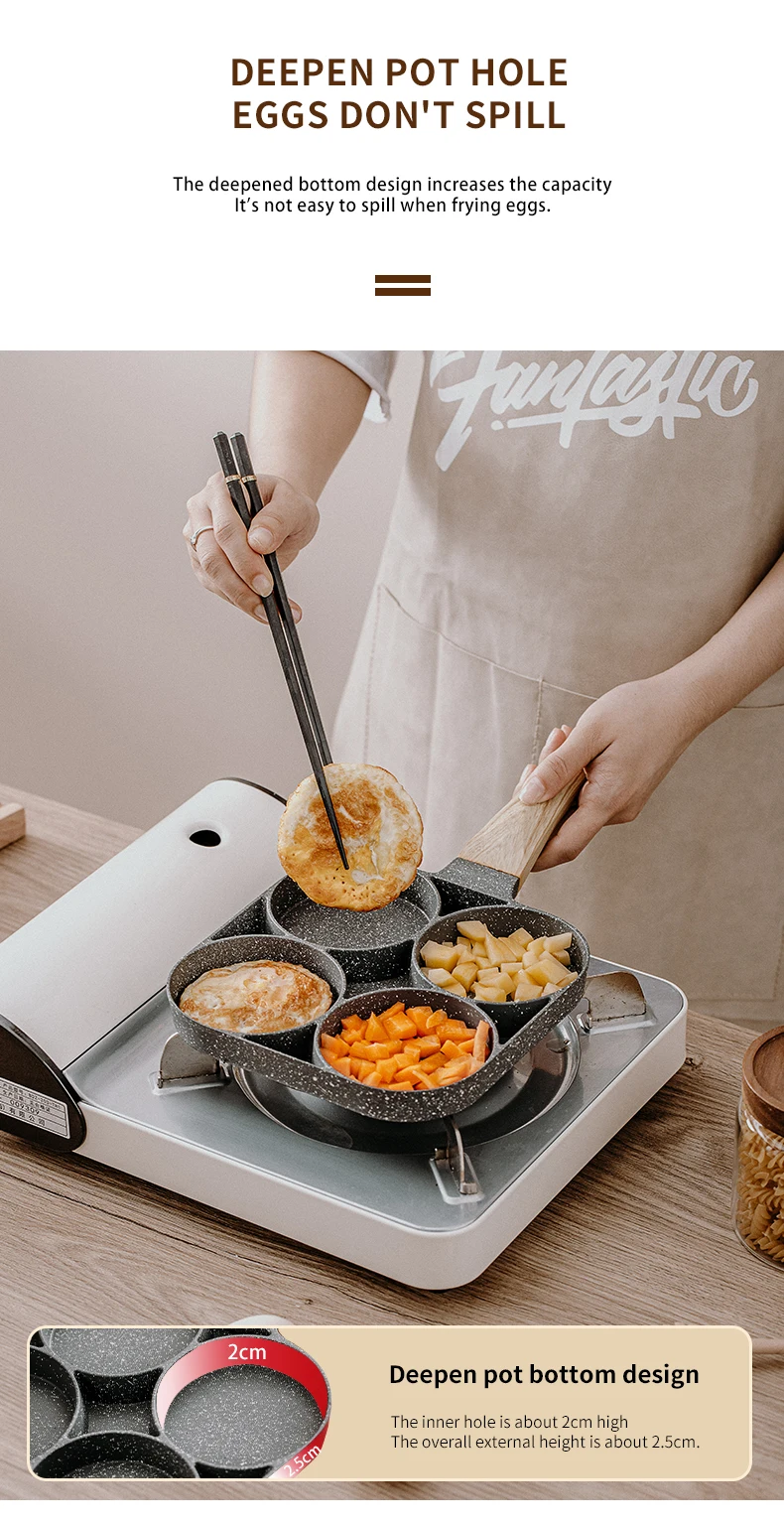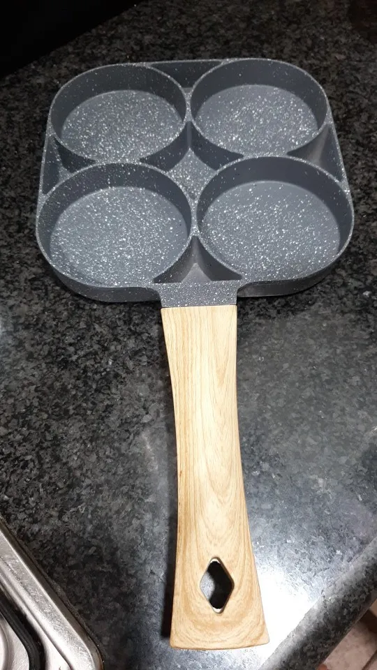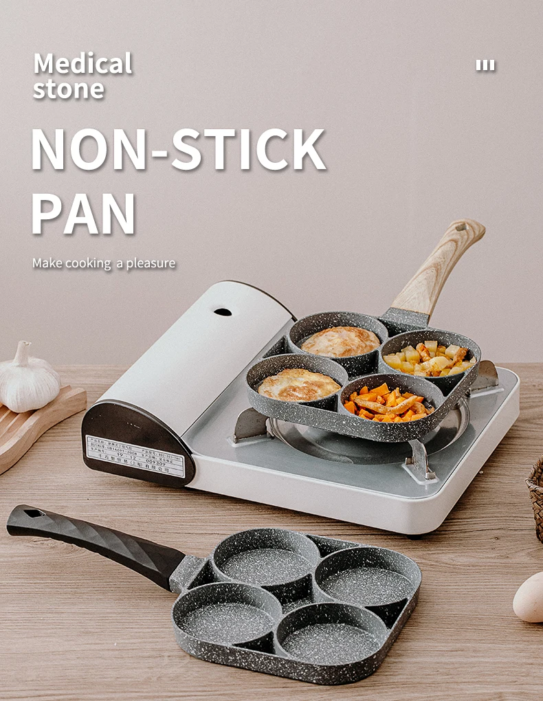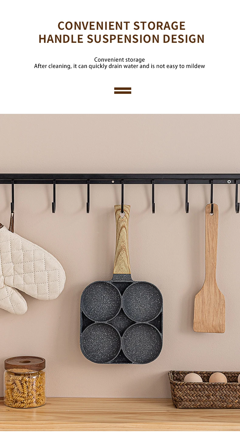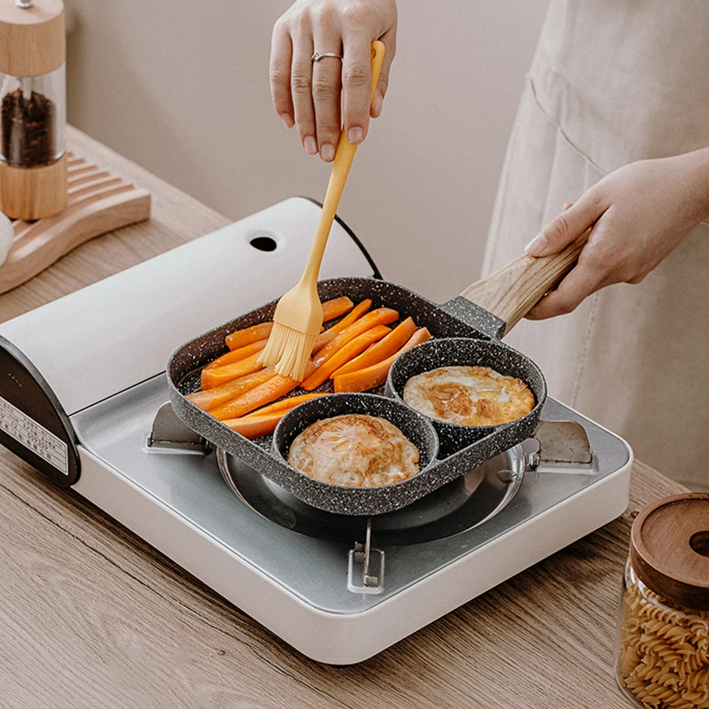 для кухни кухонные аксессуары Сковорода с четырьмя отверстиями, сковорода, утолщенная модель, антипригарная сковорода для яиц, блинов, ветчины, блинов, деревянная ручка, сковорода, сковорода для завтрака