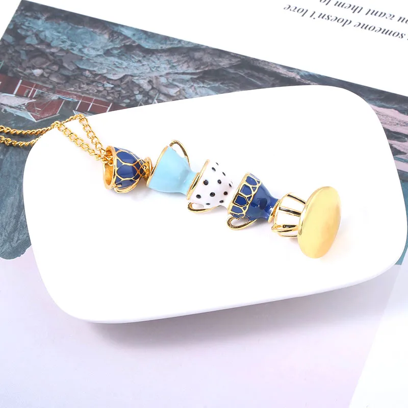Коллекция 2022 года, модное ожерелье для чашек, эмалированная подставка, чашки для чая, ювелирные изделия для женщин, мужчин, свитеров