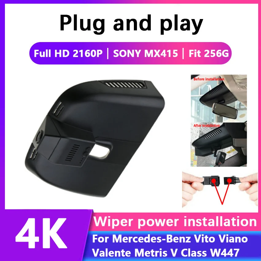 Простота установки Видеорегистраторы для автомобилей Wi-Fi видеокамера с Регистраторы Dash Cam Камера для Мерседес-Бенц Вито, виано, валенте метрис V класса W447 full hd 4K