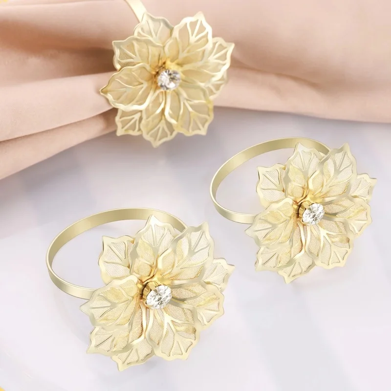 Кольца для салфеток в цветочек 10 шт., металлическая Золотая Пряжка...