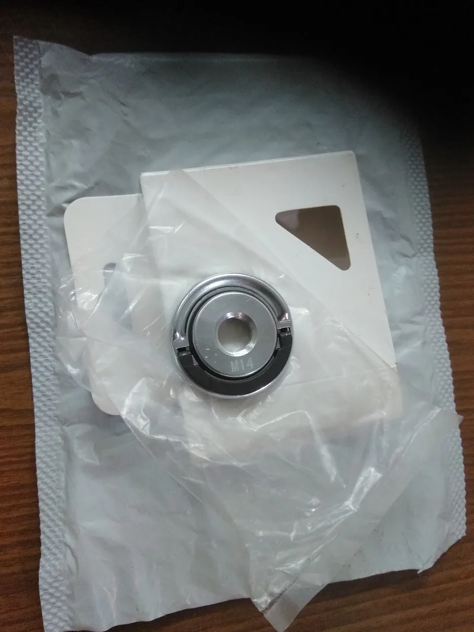 Заказ получил, доставка 1 месяц, Мистэкспресс, с уведомлением. Все пришло целое, но из коробки не работает. Шайба, которая прижимает диск должна прокручиваться относительно наружной пластины с откидной скобой. Зажимал гайку в тиски, что бы ослабить запрессовку, Только после этого все заработало, но туго. Надеюсь со временем притрется.