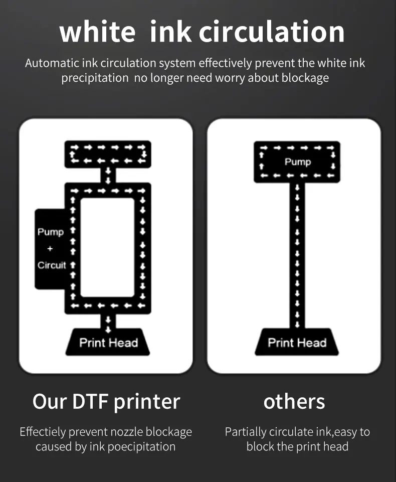 Циркуляция белых чернил, предотвращает засорение