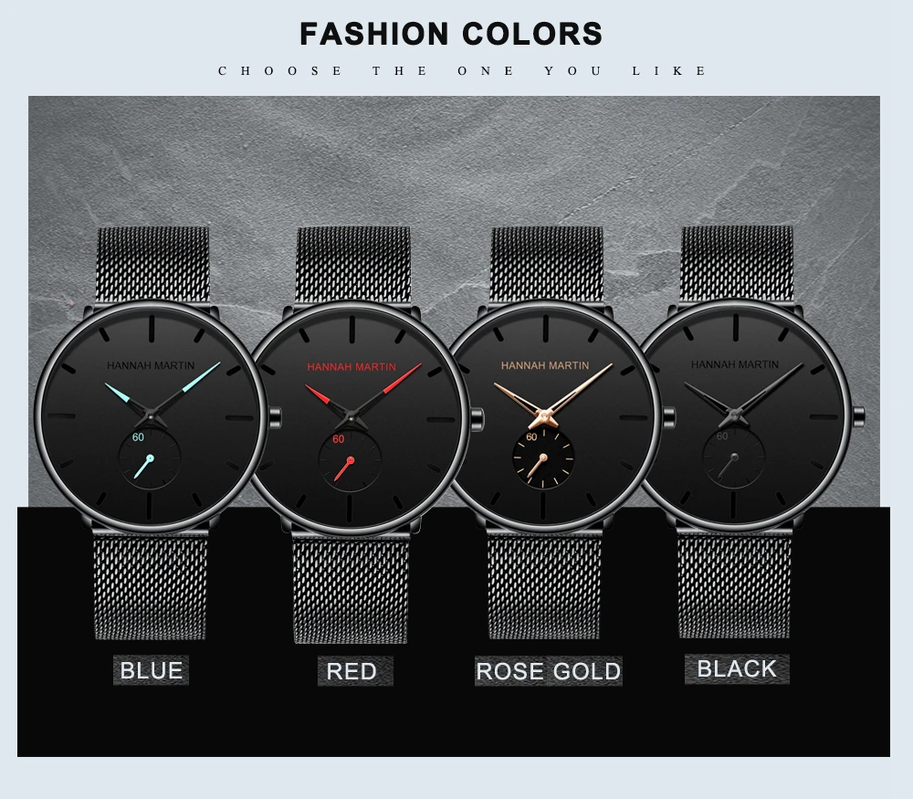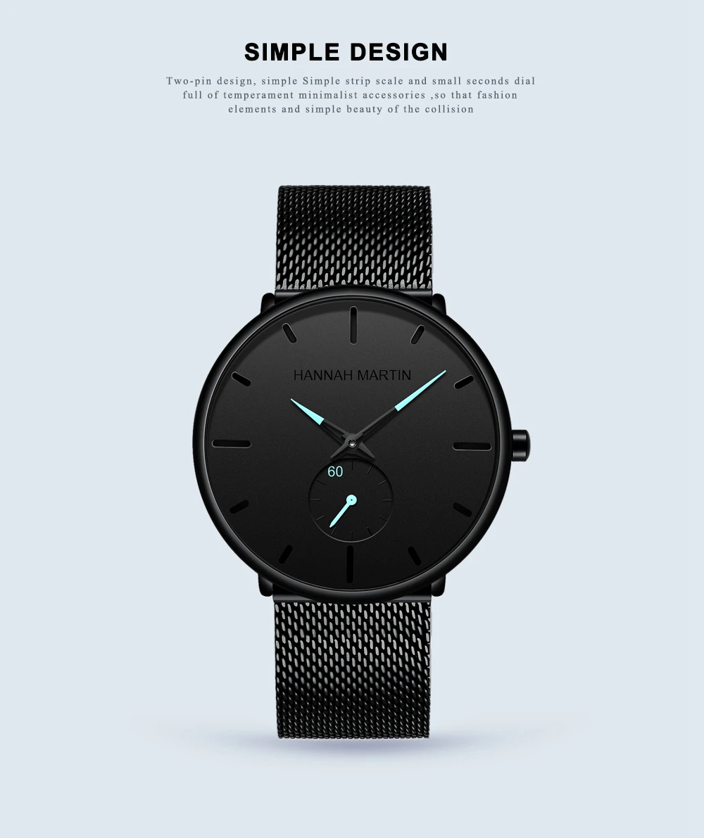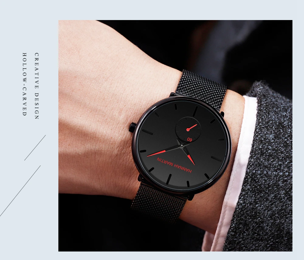 Мужские наручные часы, простые, повседневные, ультратонкие, водонепроницаемые, с сетчатым браслетом из стали, черные, с японским кварцевым механизмом