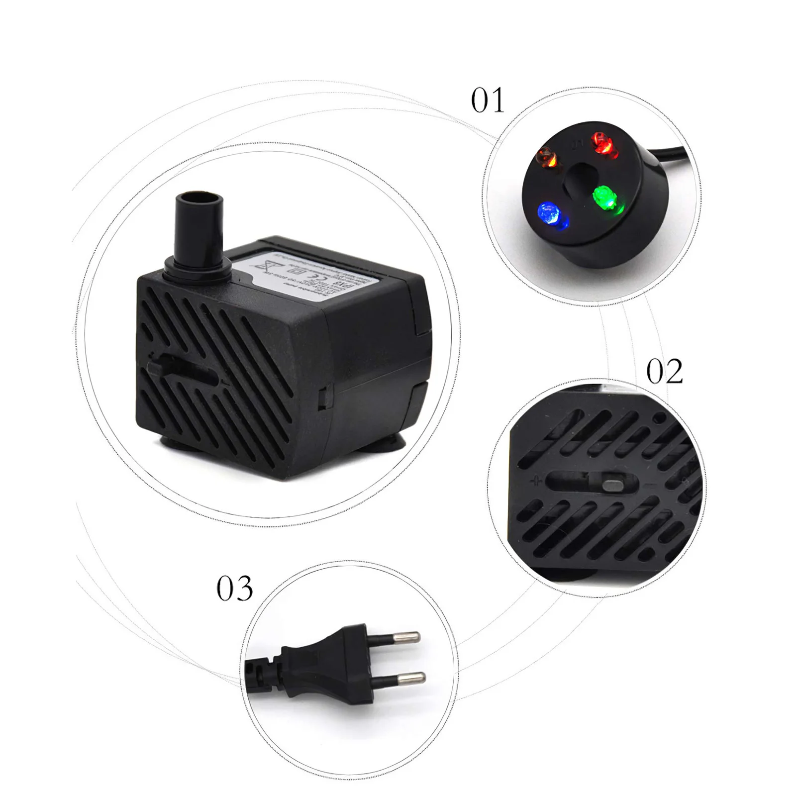 4 различных Цвета светодиодные фонари насос фонтана 3 Вт водяной насос легко Применение бесшумный насос пейзаж моторный насос пруд Fish Tank сад