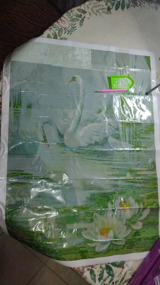 Алмазная живопись 5D сделай сам, картина в виде лебедя, озера, план...