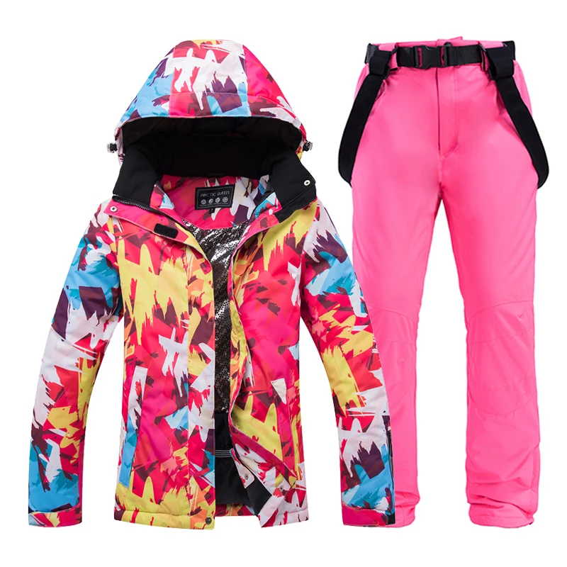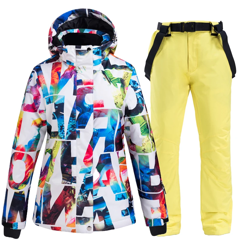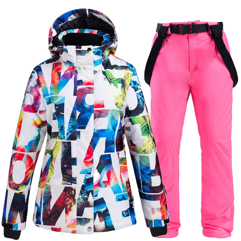 Женская лыжная одежда для сноуборда-30 по сниженной цене, водонепроницаемая зимняя спортивная одежда для улицы, комплекты зимнего костюма, куртка + брюки на бретелях для девочек