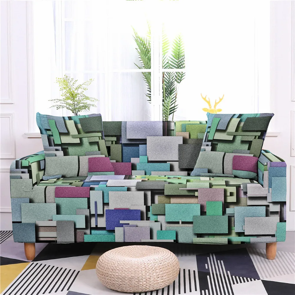 Эластичный чехол для 1234-местного дивана с геометрическим рисунком