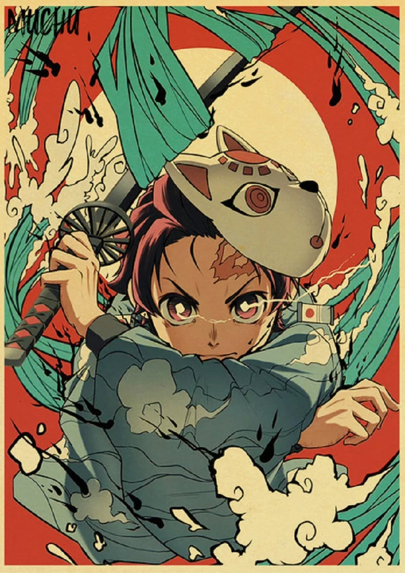 Истребитель демонов: Kimetsu'S Yaiba Tanjirou Nezuko, аниме персонаж, ретро, холст, живопись, художественный постер, семейное искусство, роспись