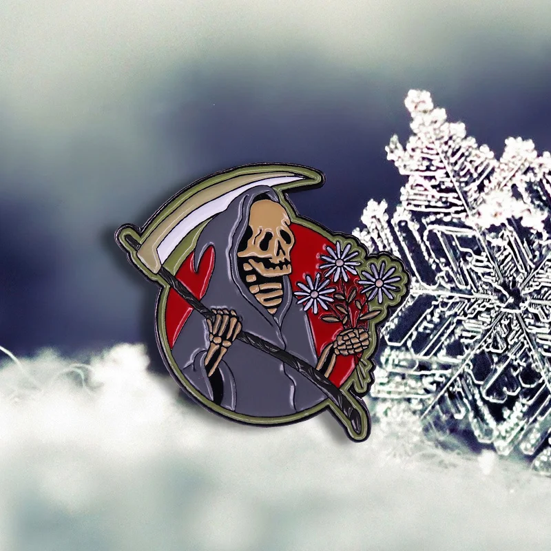 Мрачный Жнец с маргариткой брошь в стиле панк красивый талисман