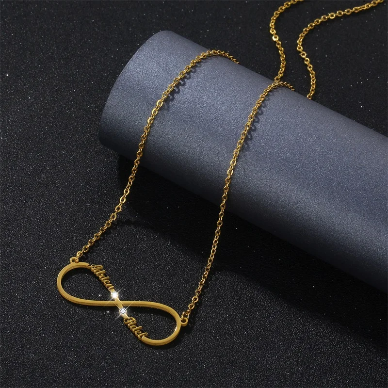Изготовленный на заказ со знаком бесконечности ожерелье, подвеска, колье, для женщин, персонализированный заказной золото амулеты из нержавеющей стали со стразами ожерелье ювелирные изделия