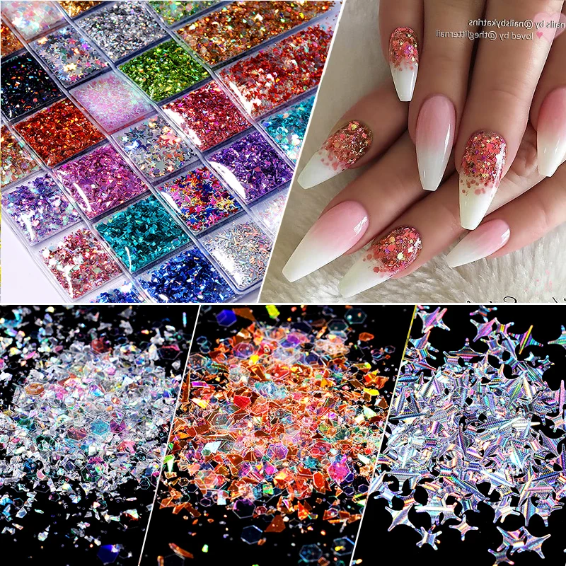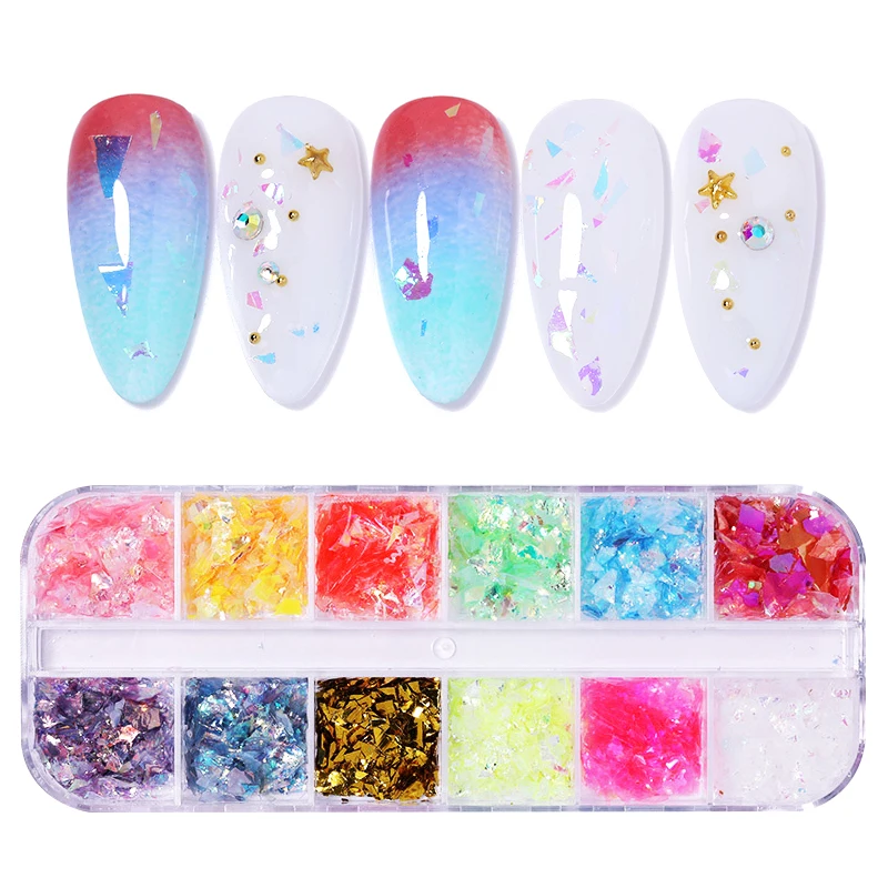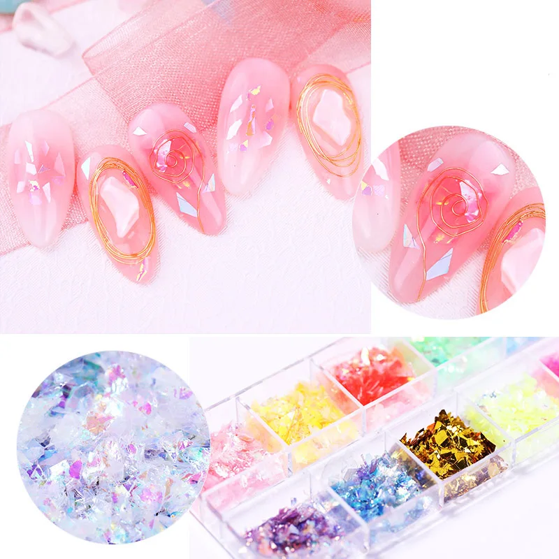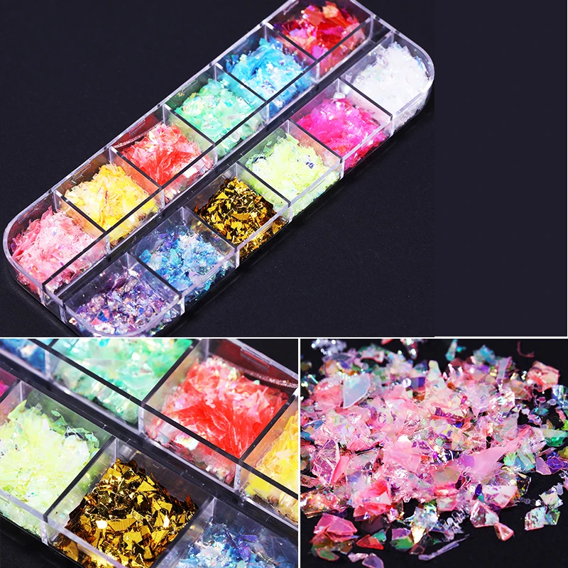 Яркие блестки Aurora, красочная нестандартная 3D палитра хлопьев для ногтей, сладости, стеклянная бумага, блеск для ногтей, украшения для творчества и ногтевого дизайна
