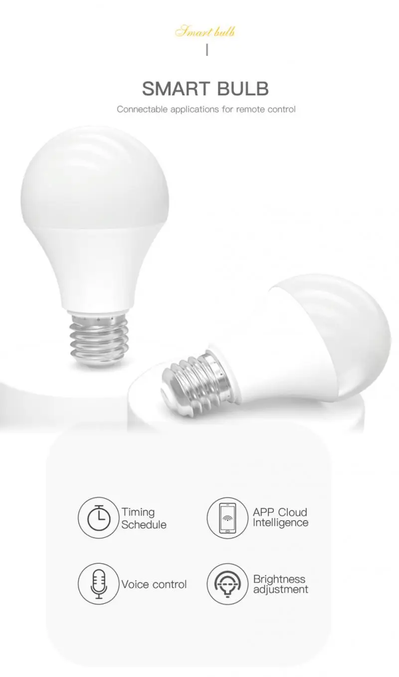 Светодиодная лампа 9 Вт, Wi-Fi Smart лампа для дома, E27, E26, B22, с регулировкой яркости, с голосовым управлением, работает с Alexa, Google Home Assistant