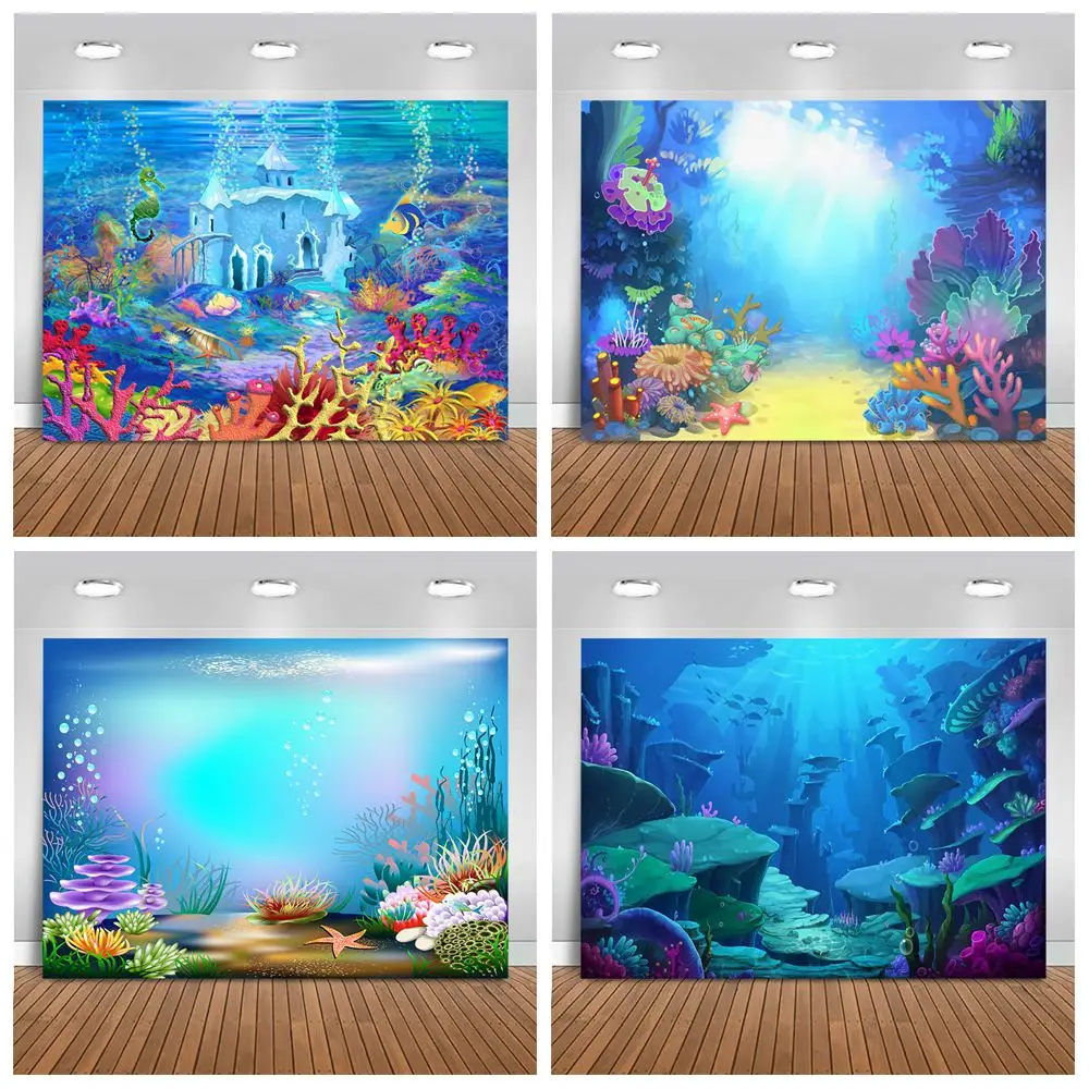 MOCSICKA фон для фотосъемки с изображением русалки подводный мир замок Дети Девочка День Рождения Торт разбивать фон Декор Фотостудия