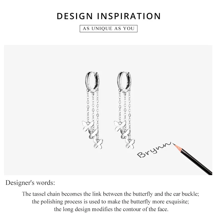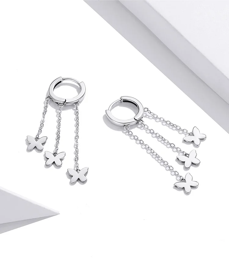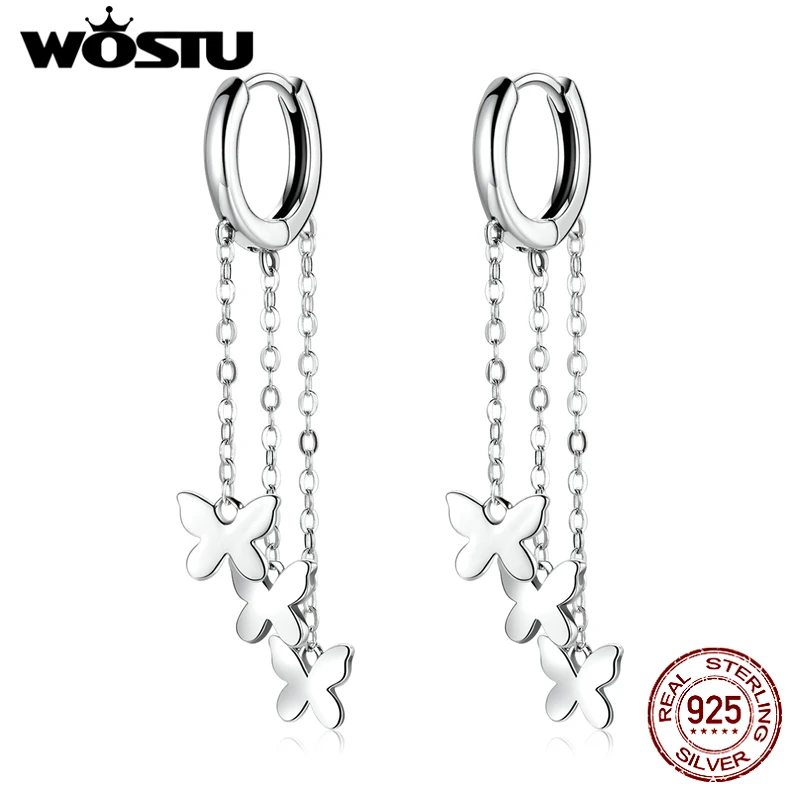 WOSTU 925 стерлингового серебра кисточкой серьги простой бабочка простые линии, свисающие серьги для женщин, серьги стильные ювелирные изделия из серебра CQE1173
