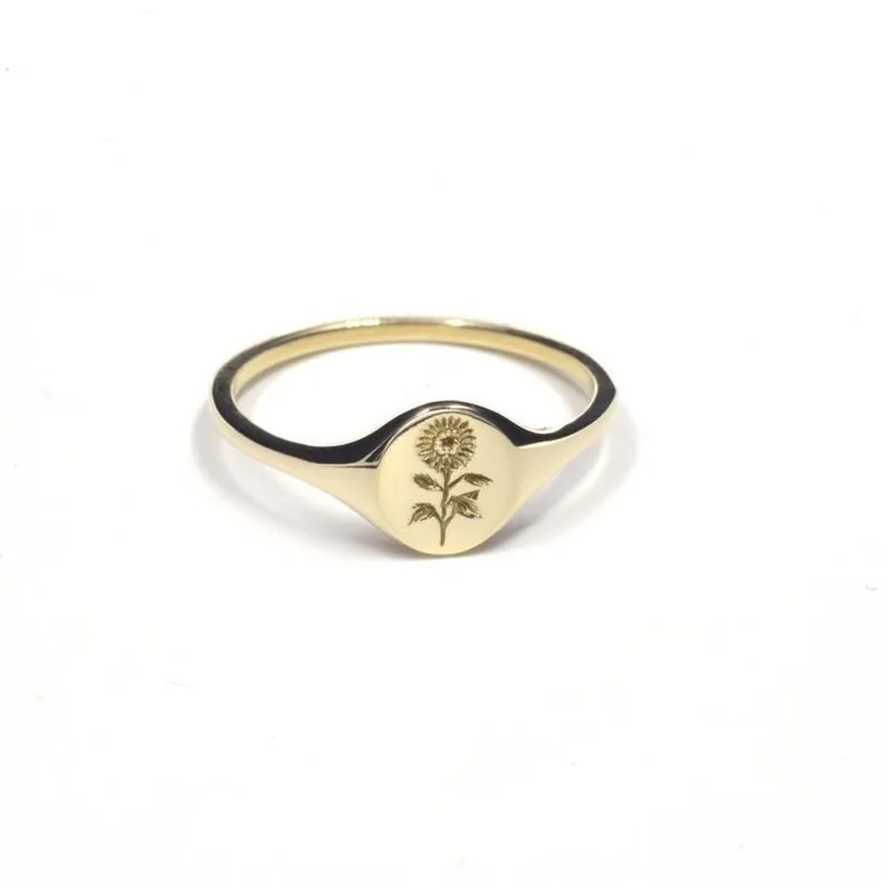 Модное позолоченное кольцо с гравировкой подсолнуха простое дизайнерское кольцо на палец для женщин и девушек элегантная бижутерия для свадебной вечеринки подарок
