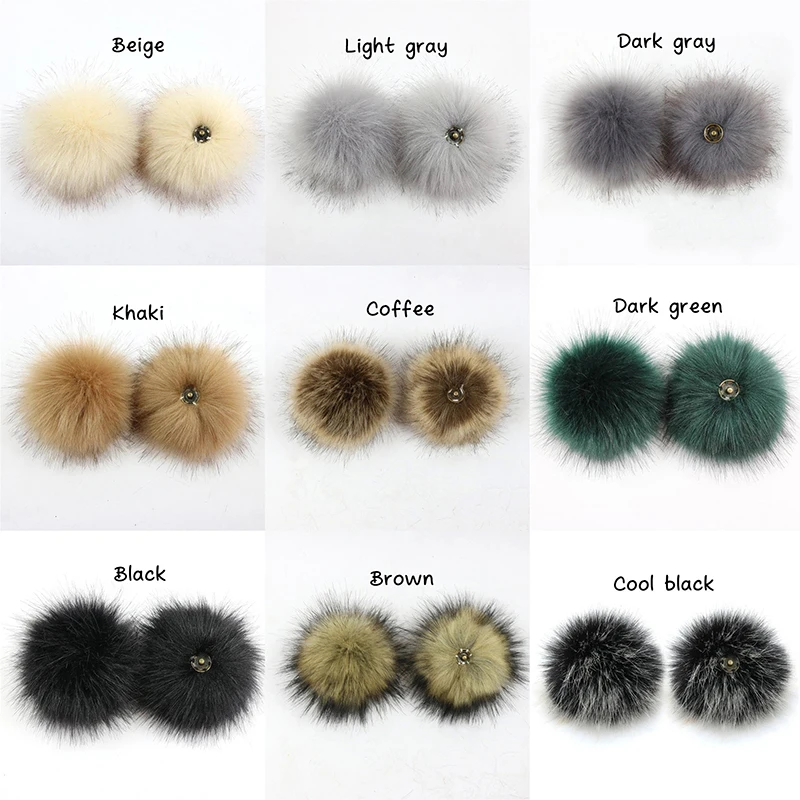 Помпон из искусственного меха с кнопкой-застежкой, 2 шт., 12 см