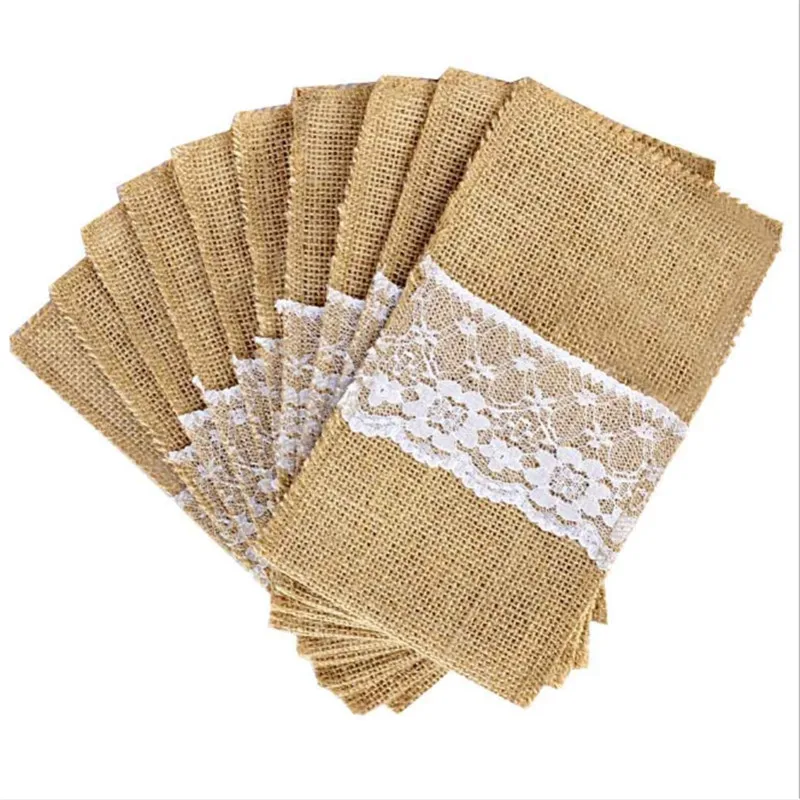 OurWarm, 10 шт., джутовая кружевная мешочек для столовых приборов, ...