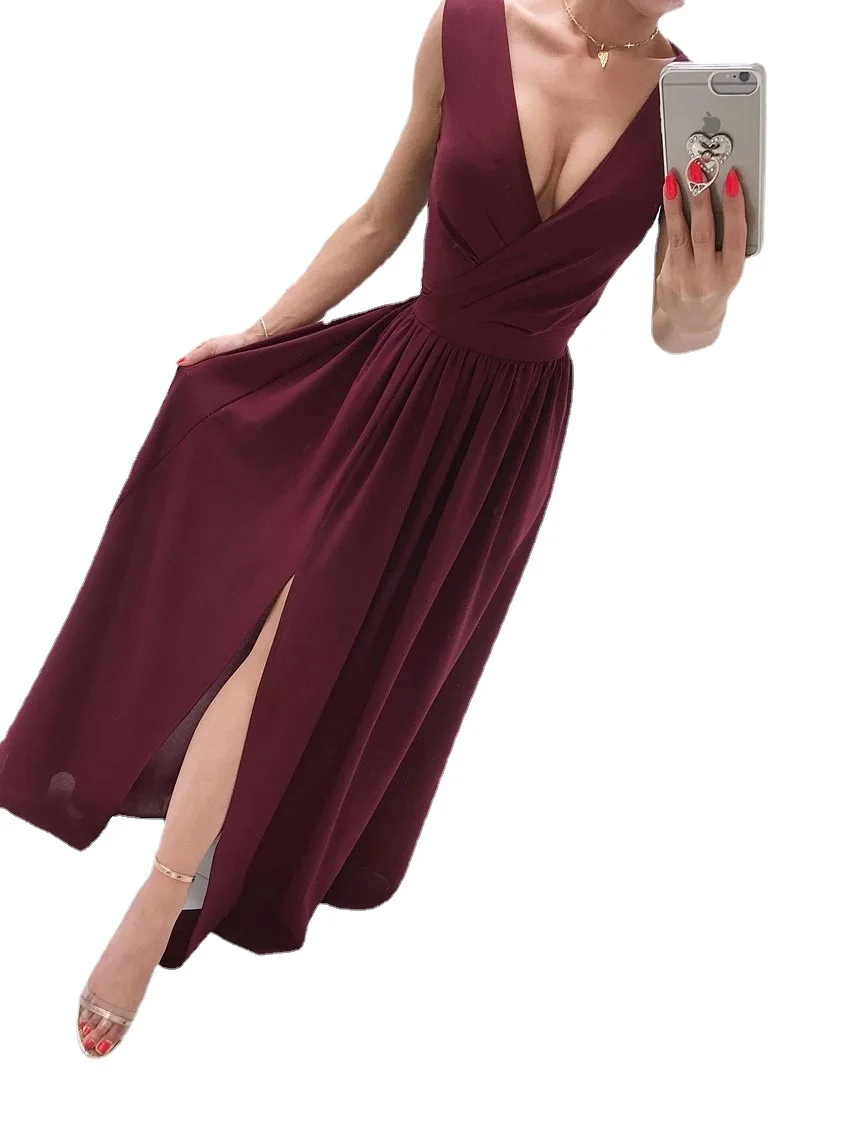 Женское платье без рукавов, с V-образным вырезом и разрезом