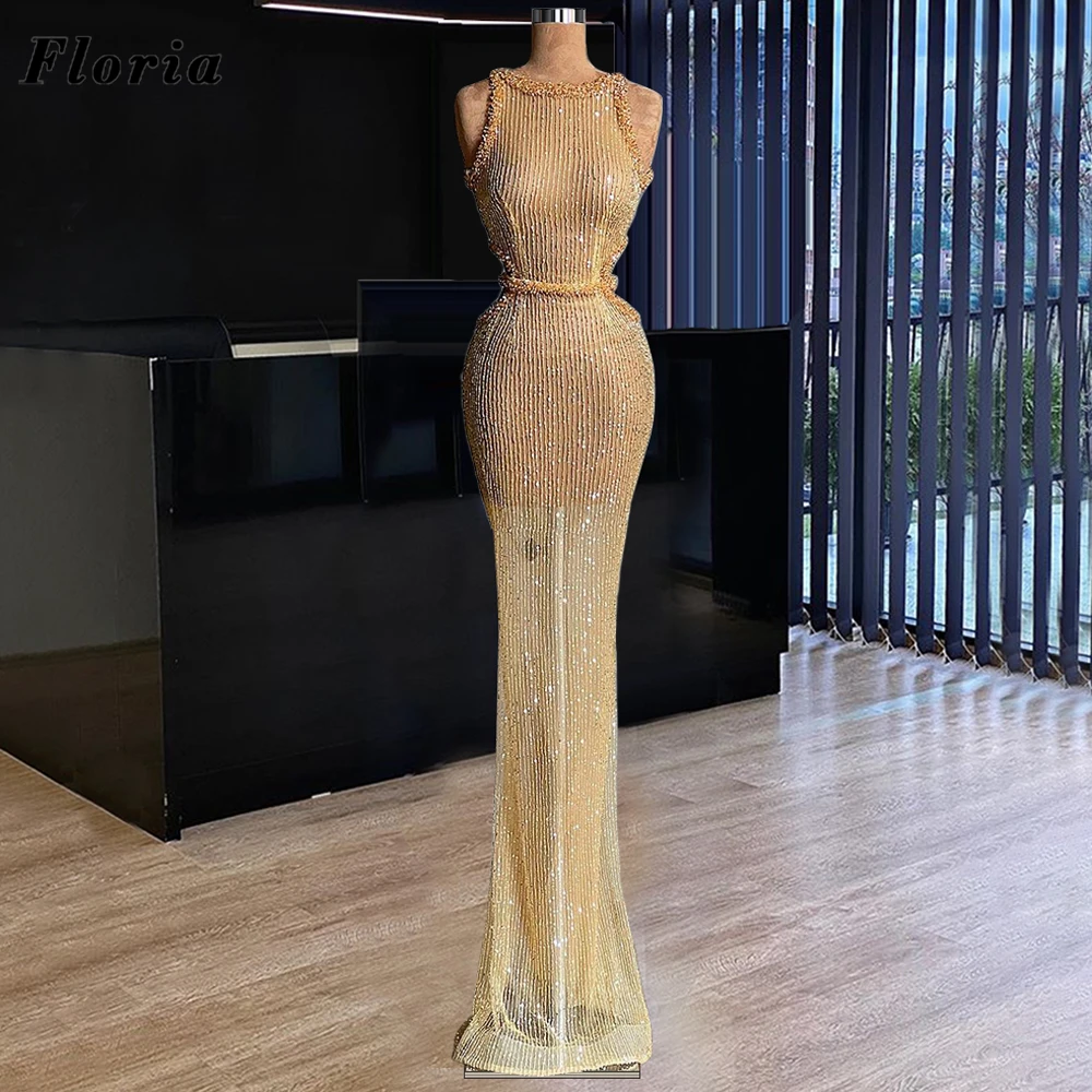 Элегантный расшитый бисером цвета шампань вечернее платье Robes De Soiree Русалка Вечерние Платье 2021 размера плюс длинное платье для выпускного вечера для Саудовской Аравии