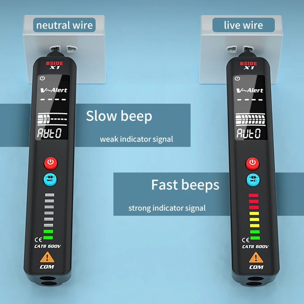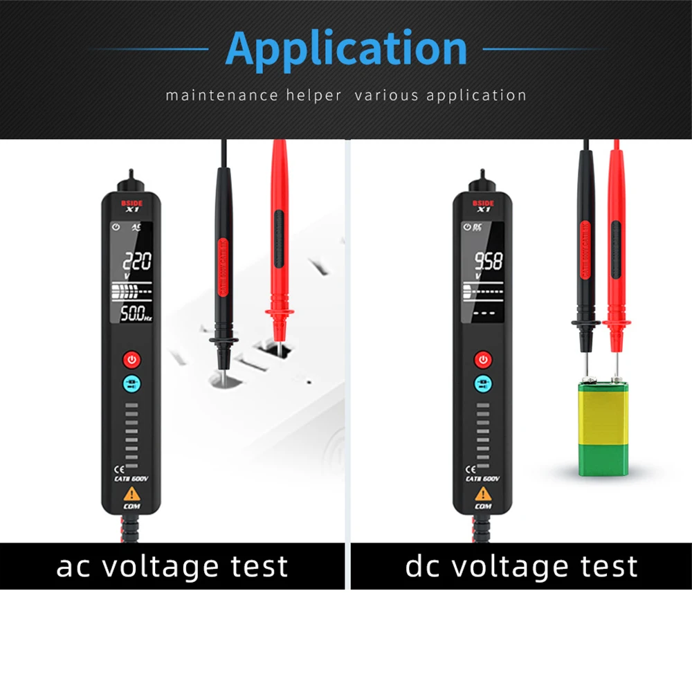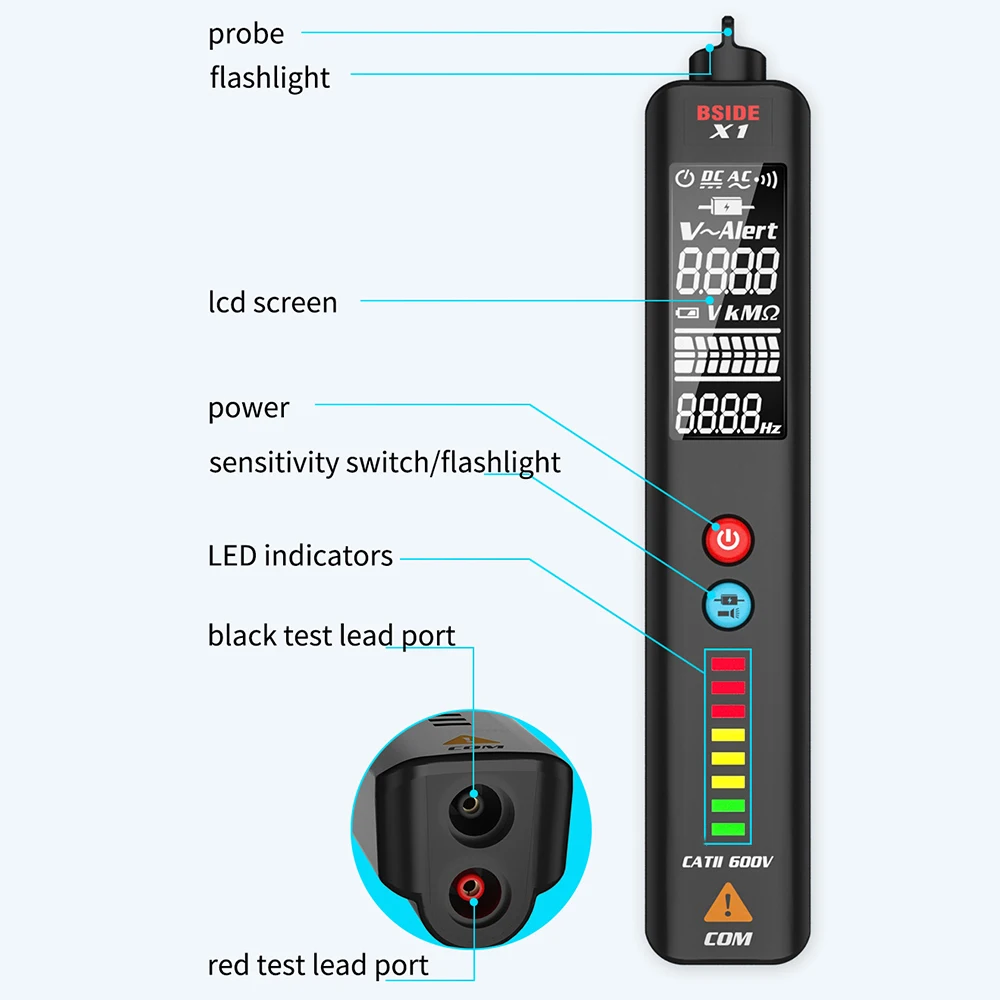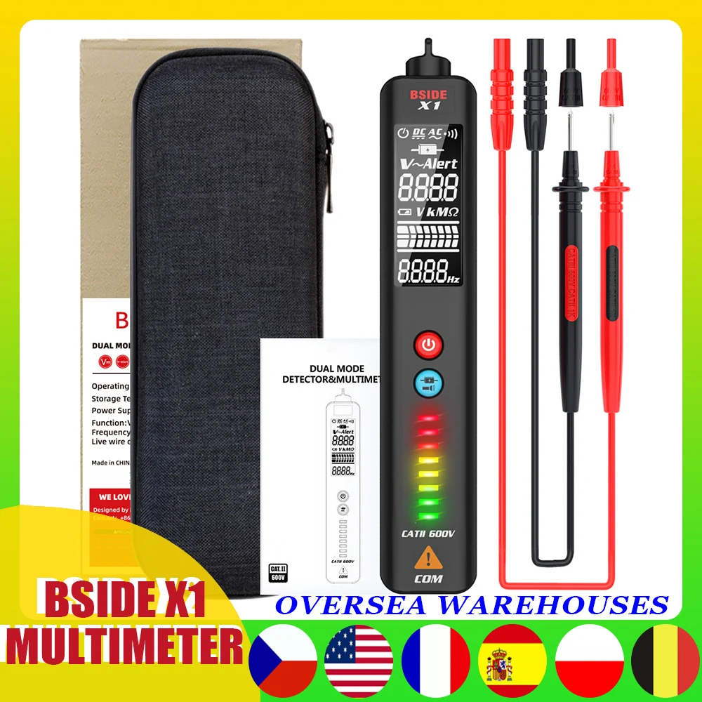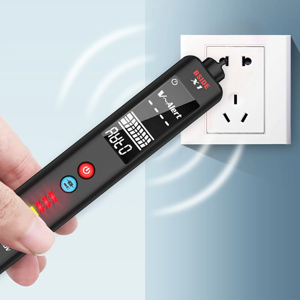 Тестер напряжения BSIDE X1, 2-дюймовый ЖК-дисплей, 3 линии, детектор напряжения, Бесконтактный двухдиапазонный датчик переменного напряжения, провод, тестовый карандаш, вольтметр