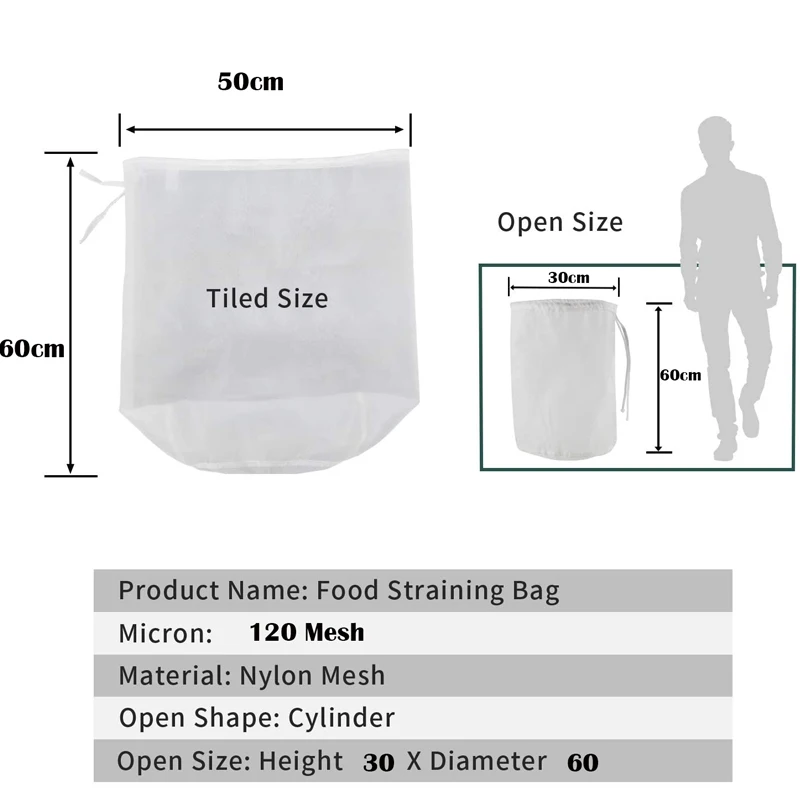 120 сетки Еда Класс многоразовые пивоварения фильтр-мешок со шнурком напрягающий цилиндр вина из бесшовной фильтрации нейлоновая мелкая сетка мешок