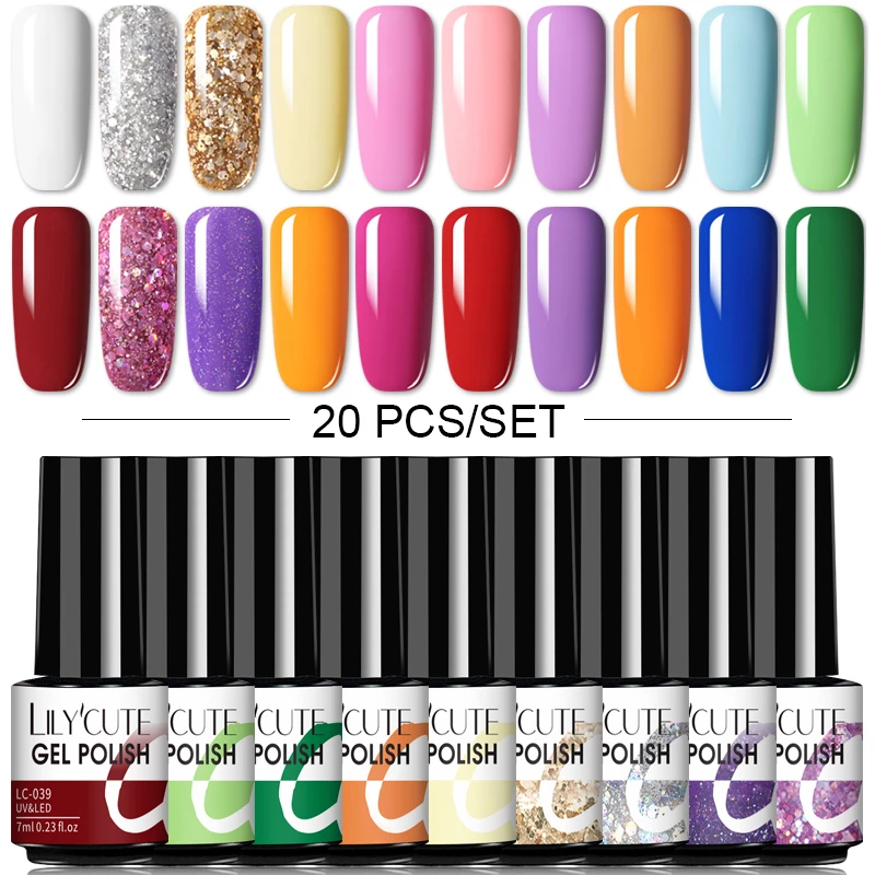 Посылка:60/40/30/20 шт набор LILYCUTE 7 мл Гель-лак