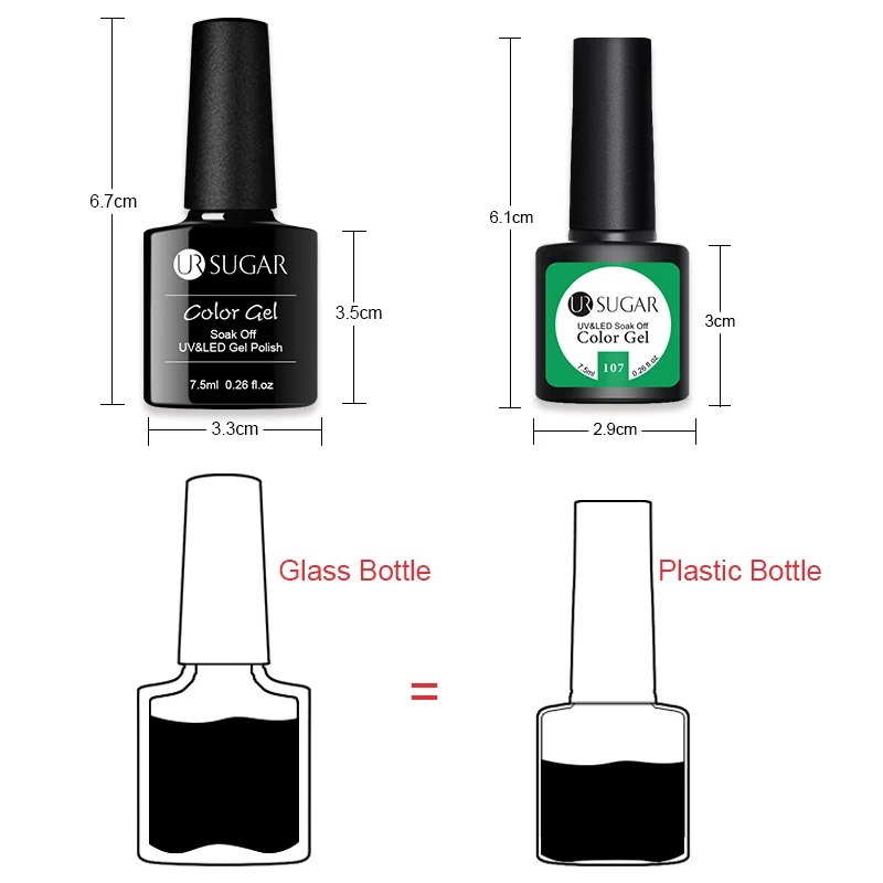 Спецификация:Бренд: UR SUGARСлоган бренда: каждый день сладкий, как сахарТип: Гель-лакТаблица цветов: 62 цвета на выборОбъем: прибл. 7,5 млСостав: смолаДлительный срок: около 15 дней и болееЭффект: блеск, голографикаСертификация: SGS, MSDS, REACH, CPNPИнструменты для отверждения: УФ-лампа светодиодный ная лампаПосылкаГель-лак для ногтей, 2/3 мл, 7,5 млУникальное предложение по продаже:Изготовлен из здоровых, экологически чистых, не ядовитых и острых химических материалов.Быстро сохнет с любым УФ светильник Том.Держится минимум 2-3 недели, фантастические и супер яркие ногти для вас.Этот Гель-лак для ногтей легко наносится и снимается.Позвольте вам создать профессиональный или домашний дизайн ногтей.Профессиональный подарок для вас или вашей девушки.Профессиональное использование:Шаг 1. Очистите ногти, затем закрепите поверхность ногтя в процессе обычный ноготь дизайна.Шаг 2. Полностью встряхните лак, это поможет сбалансировать цвет лака. (ВАЖНО)Шаг 3. Сначала нанесите базовый гель, который может увеличить стойкость лака, закрепите с помощью УФ-гелевой лампы или светодиодный Ной лампы для ногтей. (Необходимо)Шаг 4. Нанесите первый слой цветного УФ-геля непосредственно, засушите УФ-лампой в течение 2 минут или засушите светодиодный Ной лампой в течение 60 секунд.Шаг 5. Нанесите второй слой цветного геля, а затем немедленно просушите УФ-лампой в течение 2 минут или просушите светодиодный Ной лампой в течение 60 секунд.Шаг 6. Покрытие без протирания верхнего слоя, закрепляется УФ-лампой или светодиодный Ной лампой.Снимите наш шаг УФ-гель для ногтей:• Замочите ногти в миске, наполненной небольшим количеством ацетона, или Заверните каждый ноготь в ватный диск, смоченный ацетоном, на 5-10 минут.• Изделие начнет становиться мягким, и вы можете аккуратно отшлифовать его или соскользнуть с помощью небольшой деревянной палочки.Напоминание:1. Избегайте контакта с кожей. При покраснении или других побочных реакциях немедленно прекратите использование.2. Плотно закрывается. Хранить вдали от солнечного света. Хранить в недоступном для детей месте.Примечание:Пожалуйста, избегайте контакта с кожей. В случае несчастного случая или если вы чувствуете себя нездоровым, немедленно обратитесь за медицинской консультацией (показывайте этикетку, когда это возможно)