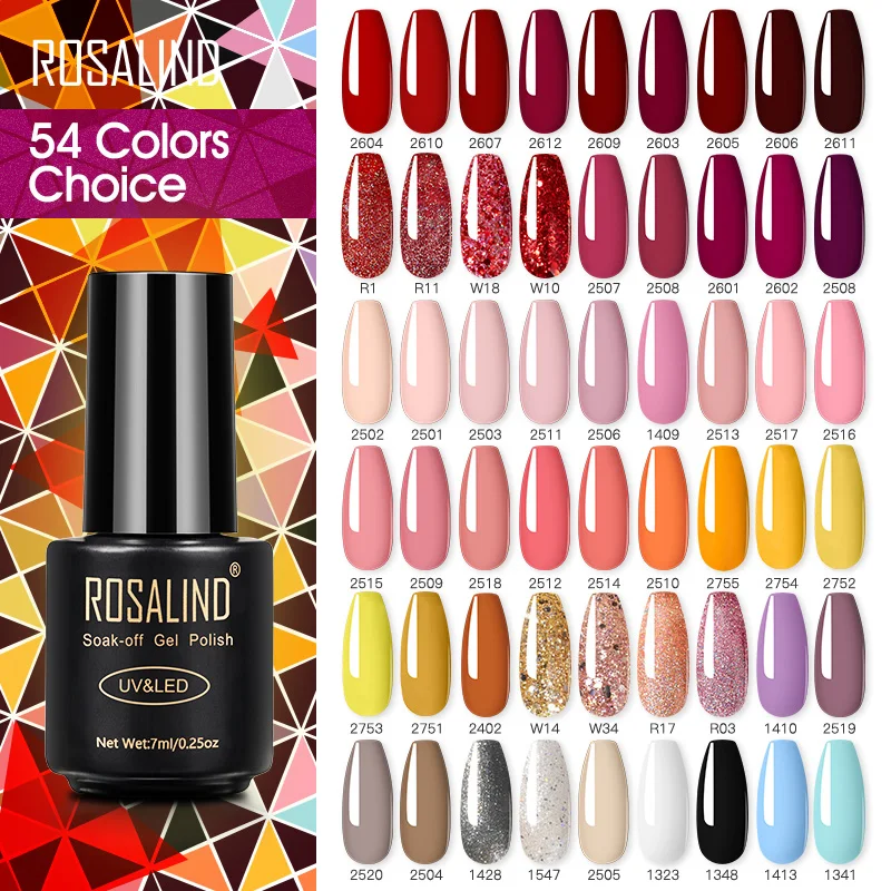 Лак для ногтей ROSALIND, гибридная красная серия, лак для ногтей, Полупостоянный, базовый, верхний слой, UV светодиодный Soff Off