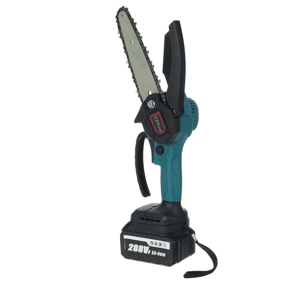Спецификация:-Длина направляющей пластины: 6 дюймов-Размер резки: 120 мм-Скорость цепи: 5 м/с-Мощность: 3000 Вт-Скорость холостого хода: 4000 об/мин-Аккумулятор: 10000 мАч-Напряжение: 88VF/288VF-Размер: 22x17 см-Цвет: черный/синий-Адаптер питания: вилка ЕС/США-Источник питания: литий-ионный аккумулятор-Материал цепи: Высокоуглеродистая сталь-Сфера применения: резка сада/бамбука/обрезка/резка дров