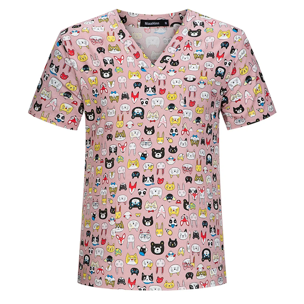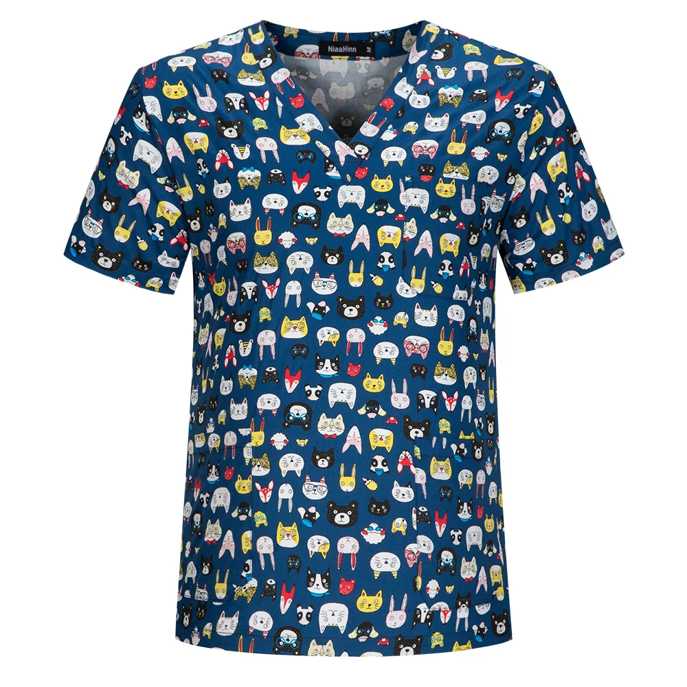 Scrubs tops Cute Cartoon printing Kindergarten teacher workwear pet...