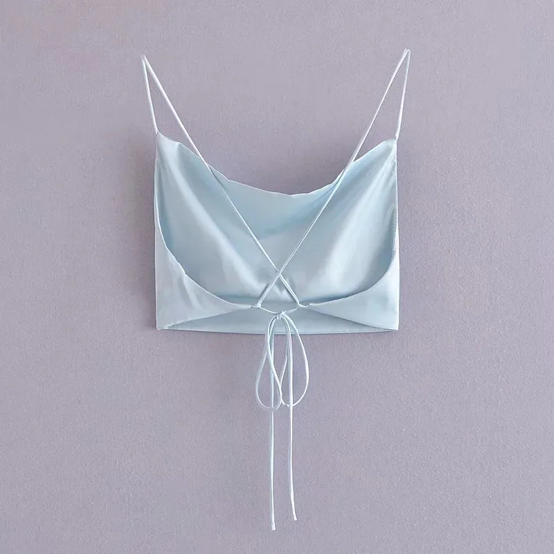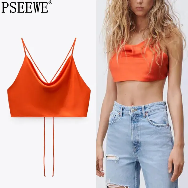 PSEEWE 2021 атласная верхняя модель, летний женский укороченный топ с открытой спиной, розовый белый женский топ на бретельках, сексуальные майки без рукавов, Camis
