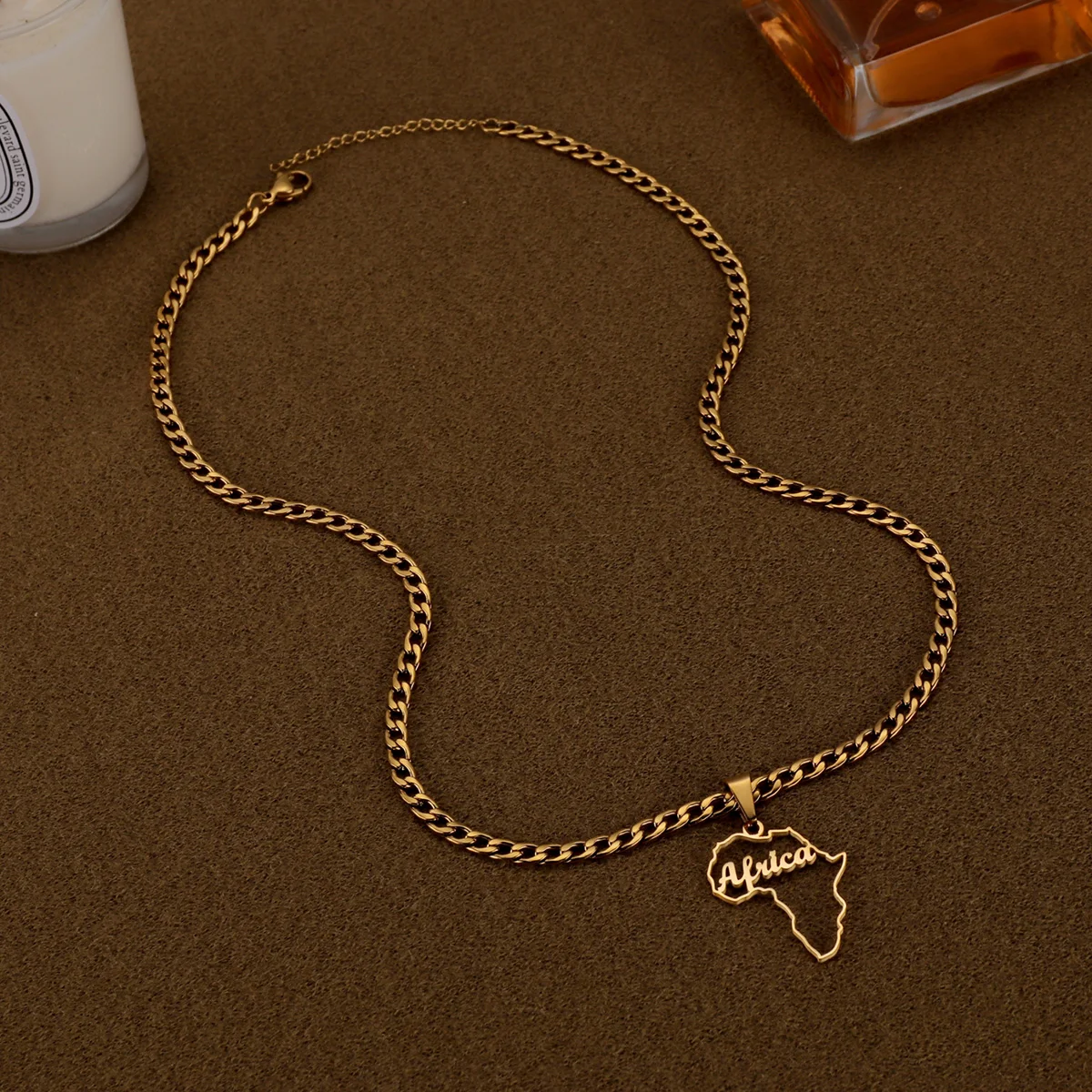 Персонализированные именные ожерелья Atoztide, именная табличка, подвеска в форме карты, ювелирные изделия, толстая цепь из нержавеющей стали с буквами для мужчин, подарок