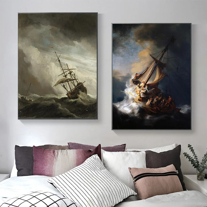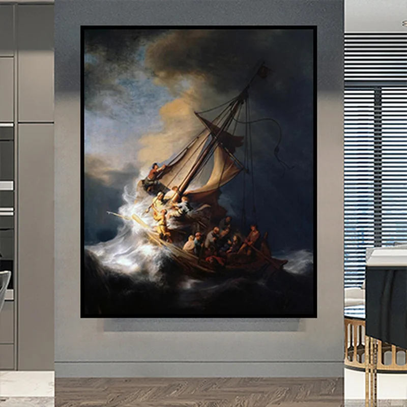 Известный Рембрандт Ван риджей шторм морем Галилеи голландский золотой век Картина на холсте постер настенное искусство картины для гостиной