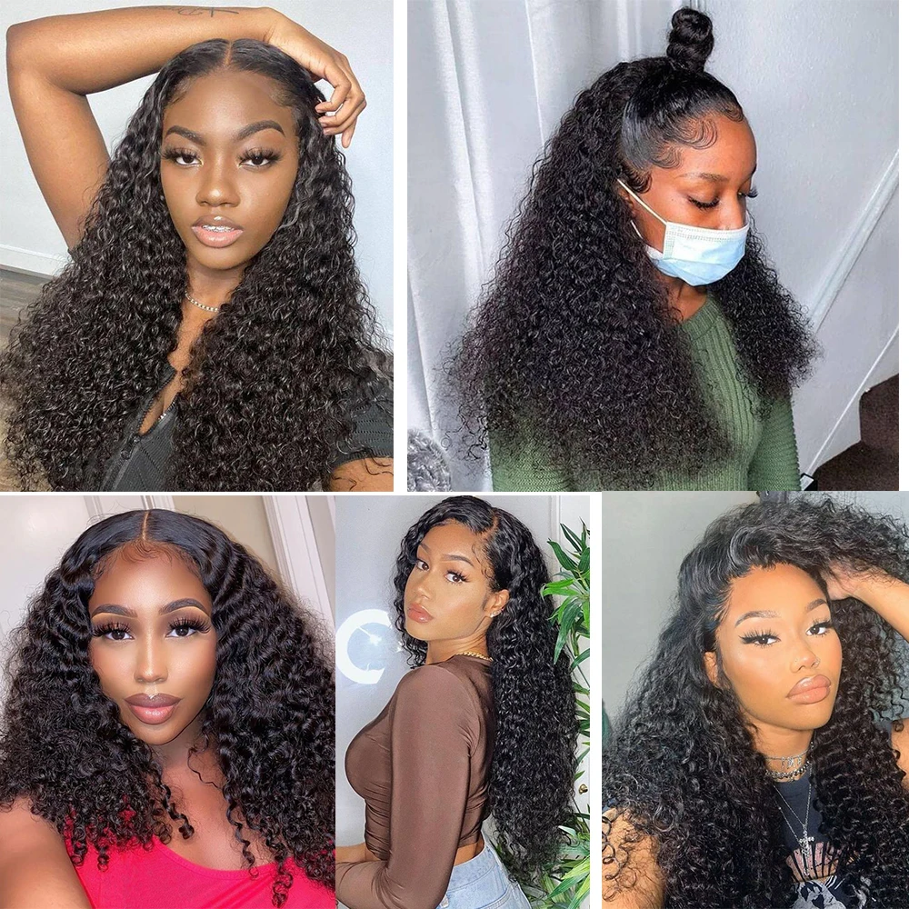 Плотность 250%, вьющиеся человеческие волосы для черных женщин, предварительно выщипанные длинные 30 дюймов, 13x6, прозрачные, с глубокими вьющимися кружевами, фронтальный парик