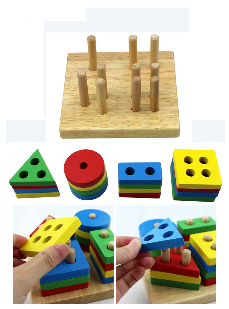 Функция:* Строительные блоки, тренировка захвата, развитие тонких движений* Поместите форму на соответствующий набор колонн, чтобы улучшить способность ребенка распознавать форму, концентрацию упражнений