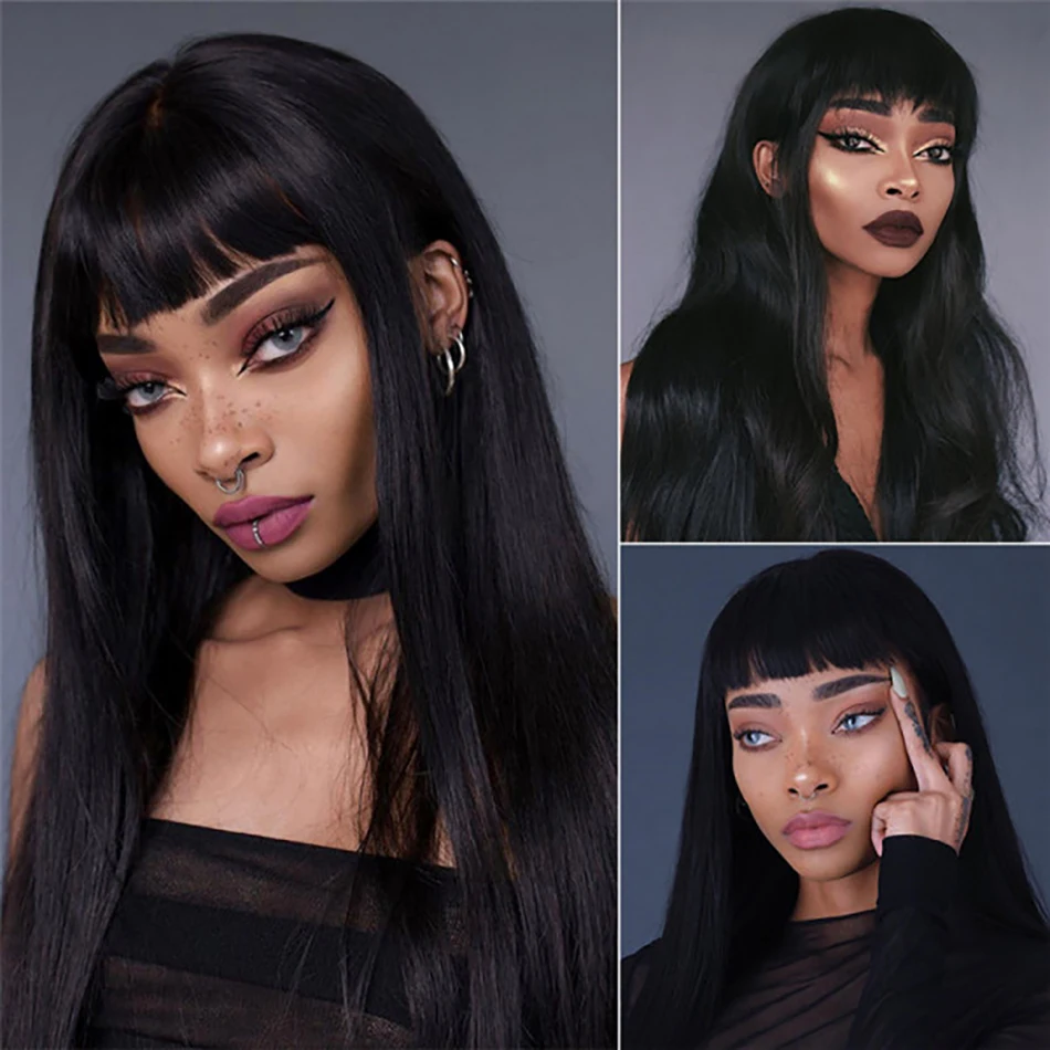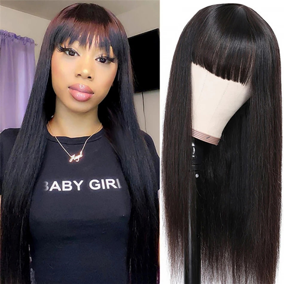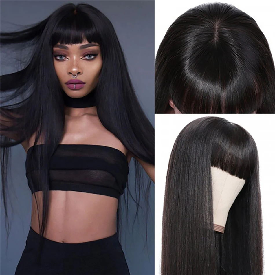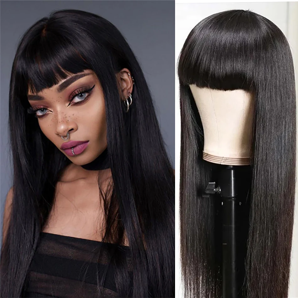 Парик из длинных прямых человеческих волос с челкой для чернокожих женщин, 10-30 дюймов, натуральный цвет, прямой парик с прямыми волосами, Омбре