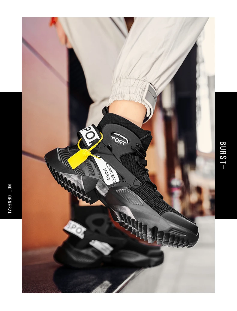 Кроссовки-носки мужские с высоким берцем, модная дышащая легкая Пов...