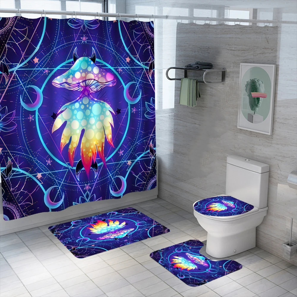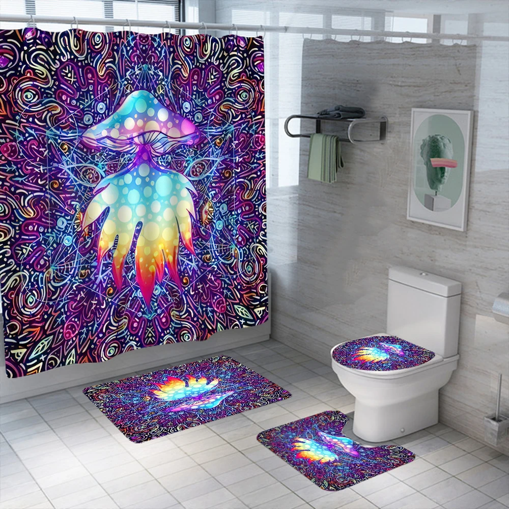 Набор психоделических занавесок для душа в виде грибов, водонепроницаемые моющиеся занавески для ванной из полиэстера, Противоскользящие коврики, крышка для туалета, набор ковриков для ванной