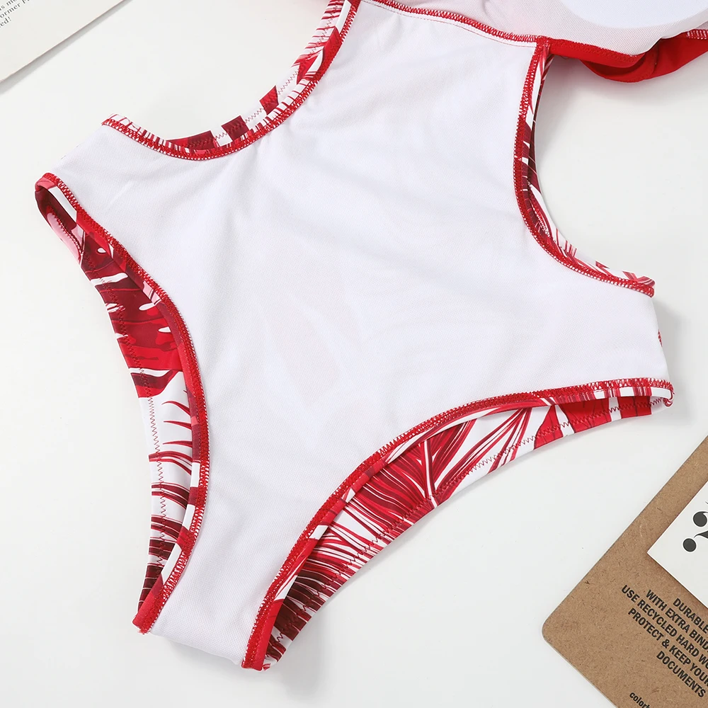 2021 купальники с принтом листьев, Женский облегающий слитный купал...