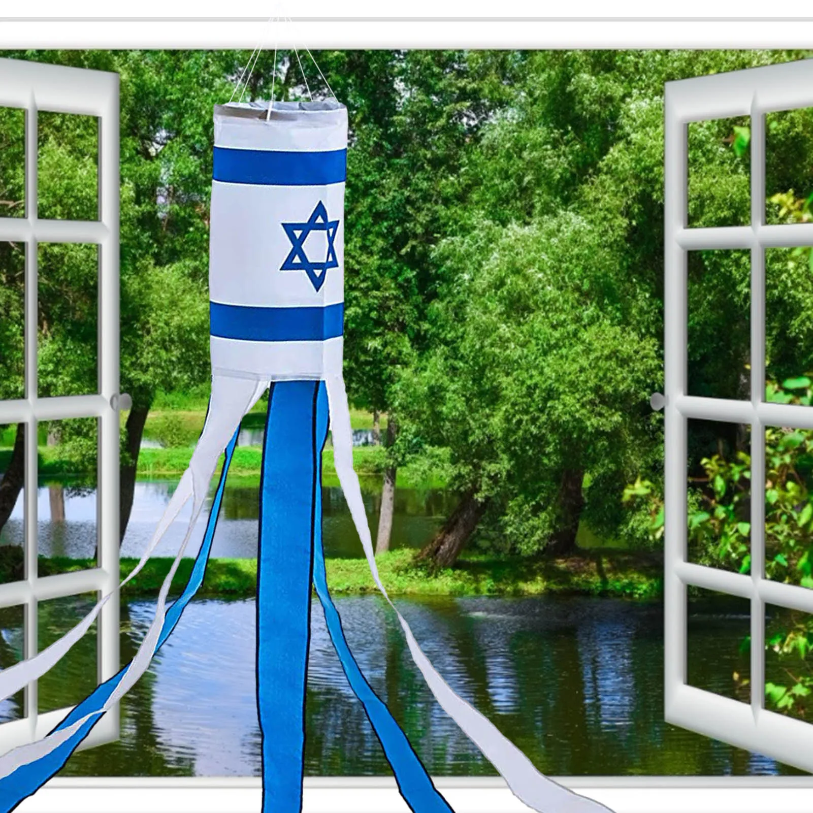 Описание:1. Красивый 60-дюймовый Израиля подвесной Флаг разработан с 6 растяжки, с белыми и голубыми хвосты, чтобы летать на ветру.2. Можно повесить в любое время года, чтобы украсить террасы, сады, лодки, палубы, веранды и т. Д.3. Изготовлен из высококачественного полиэфирного волокна, с устойчивыми к атмосферным воздействиям и против солнечных лучей прошитыми краями, длится дольше на ветру.4. Включает металлический вращающийся зажим, чтобы его можно было повесить без сборки.5. Когда висящий флаг вращается и качается изящно на ветру, вы можете наслаждаться красивыми пейзажами в движении.
