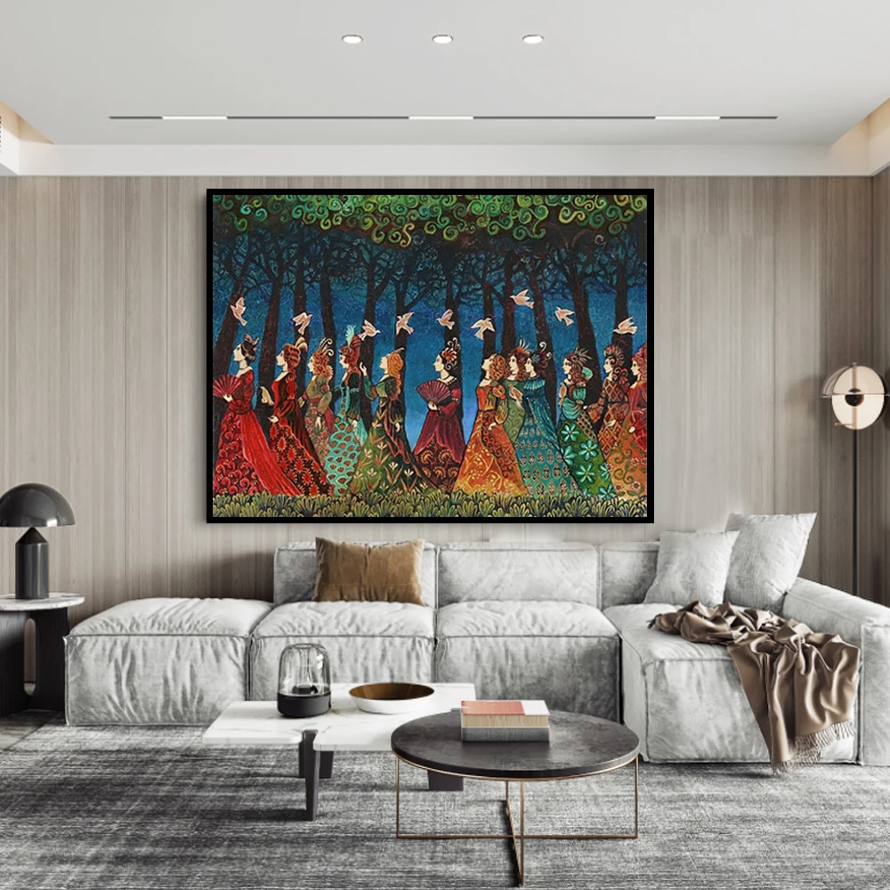 Плакат с тысячами птиц, холст, абстрактная живопись, принт с пейзаж...