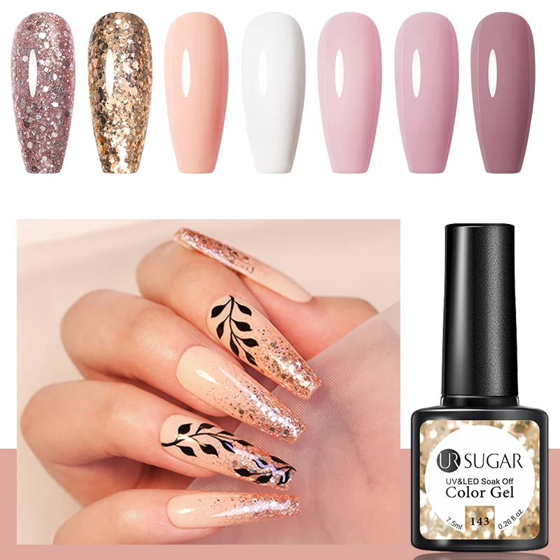 UR SUGAR Шампанское Золото Блестящий Гель-лак для ногтей отмачиваемые гель Лаки салон для дизайна ногтей Базовое покрытие светодиодная УФ-лампа для ногтей гель