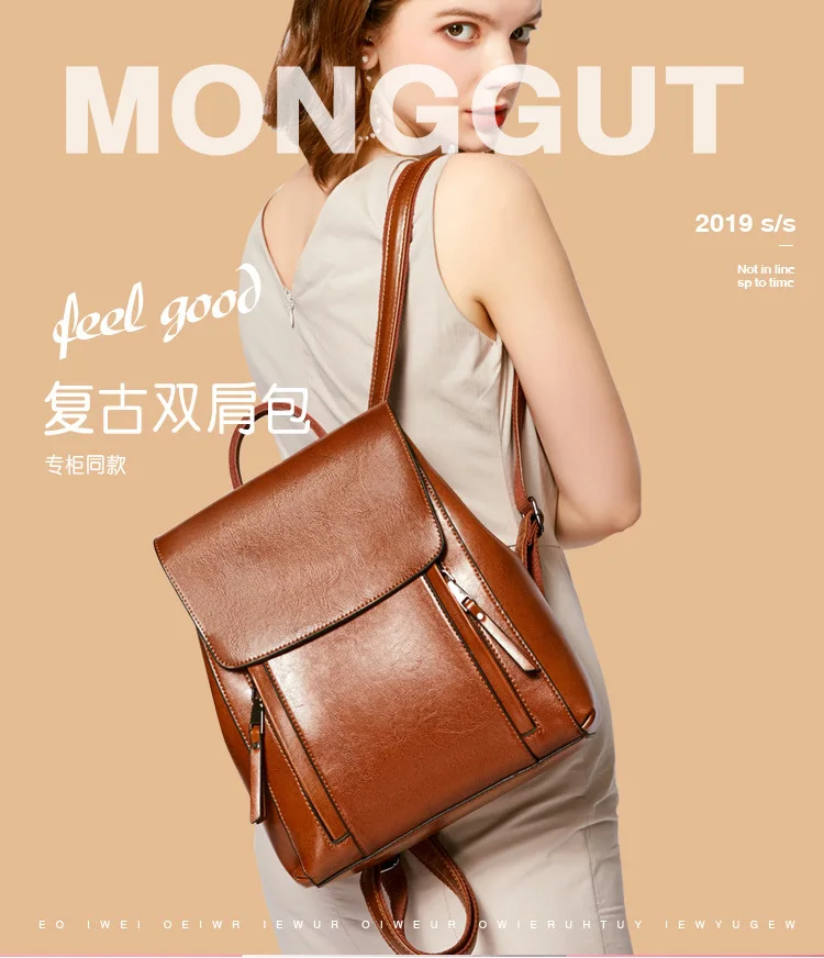 Женский рюкзак, новинка 2021, кожаная женская сумка, модный рюкзак из вощеной коровьей кожи, женская школьная сумка