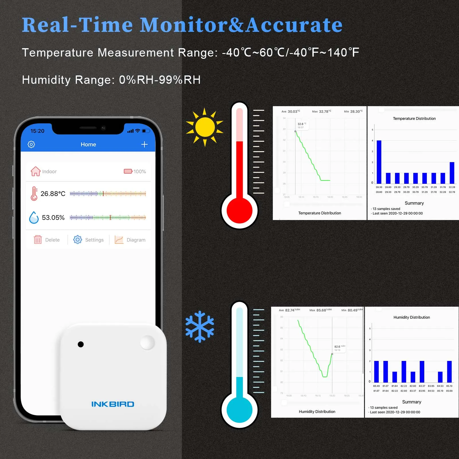 Номер моделиINKBIRD IBS-TH2 Thermometer&Hygrometer Smart Home Sensor