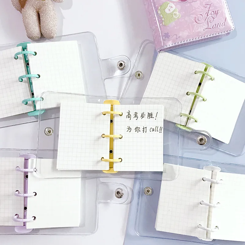 Мини-блокнот с 3 отверстиями, прозрачный чехол из ПВХ, блокнот с ми...