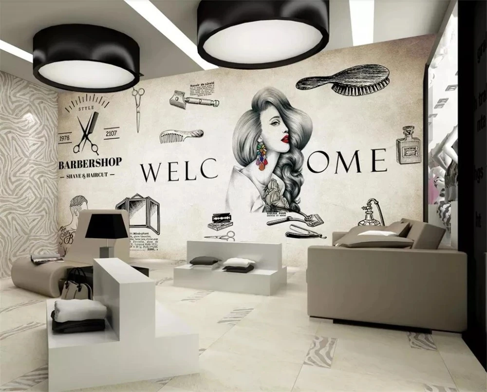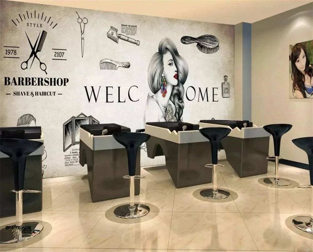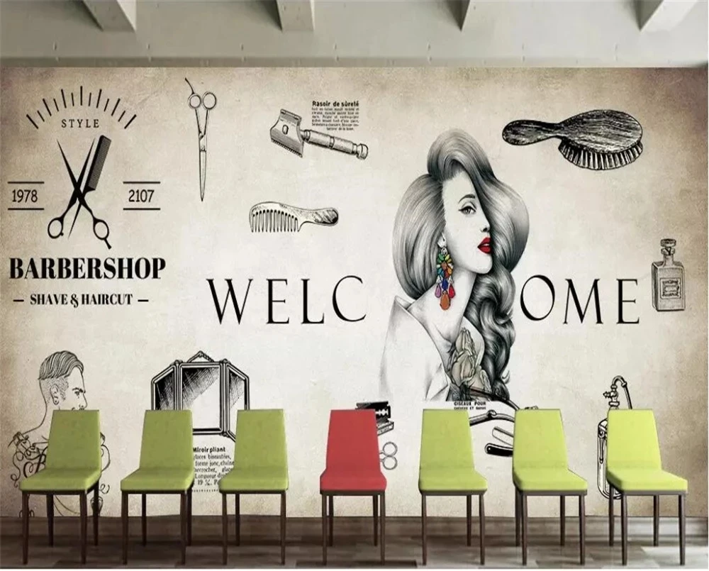 Большие 3D обои на заказ, Ретро Фреска, Ностальгический парикмахерский салон, татуировка, Ностальгический фон, украшение, водонепроницаемый