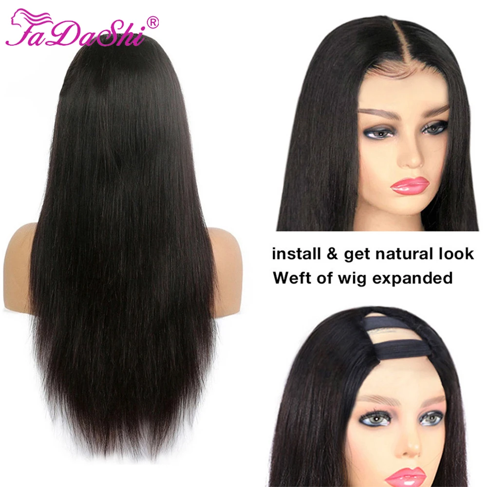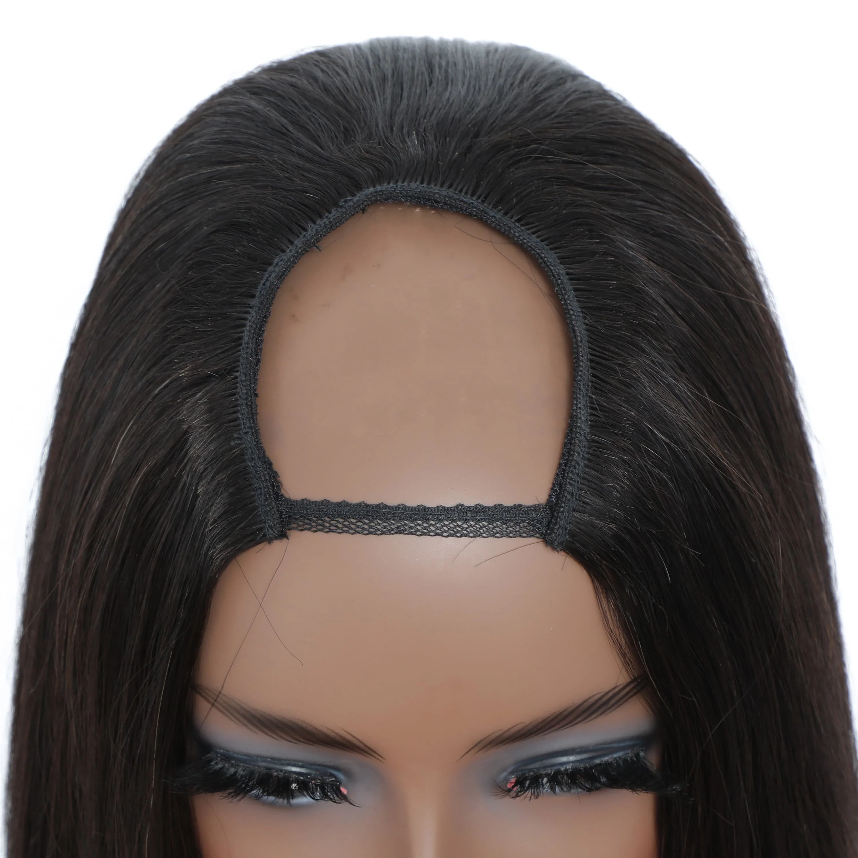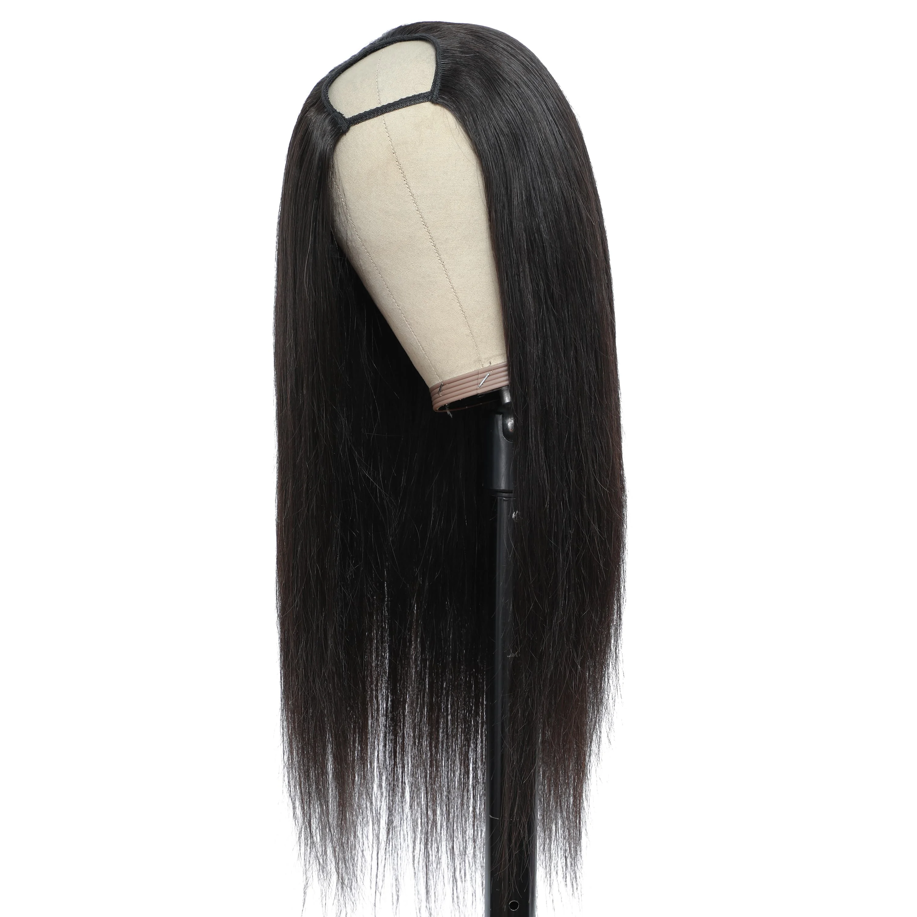 Парики из натуральных волос с прямыми U-образными волосами, с зажимами