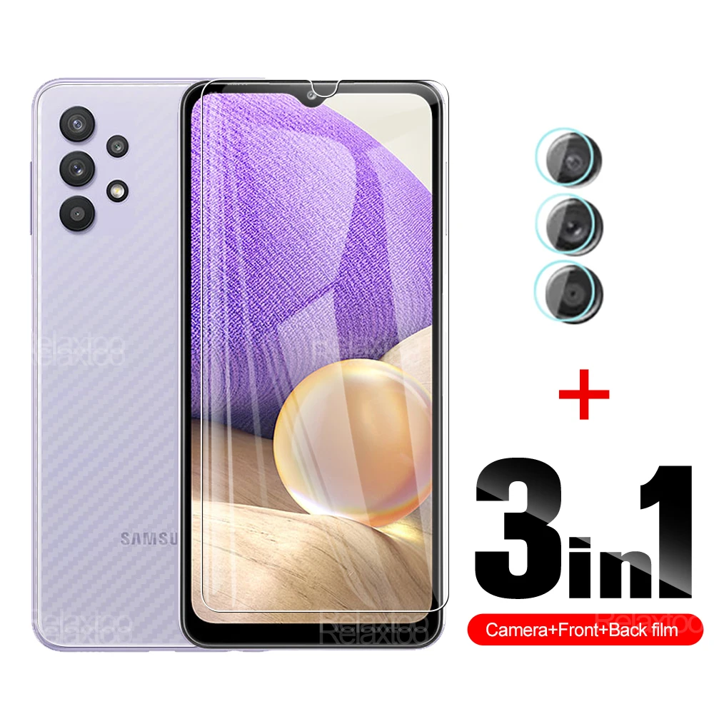 3 в 1 полноразмерная пленка для объектива камеры, переднее закаленное стекло и мягкое углеродное заднее волокно для Samsung Galaxy A32 5G Sansung A 32 6,5"