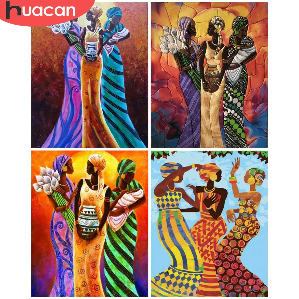 HUACAN картина маслом рисунок на холсте Ручная роспись искусство подарок DIY картины по номеру африканские женские комплекты, украшение для дома