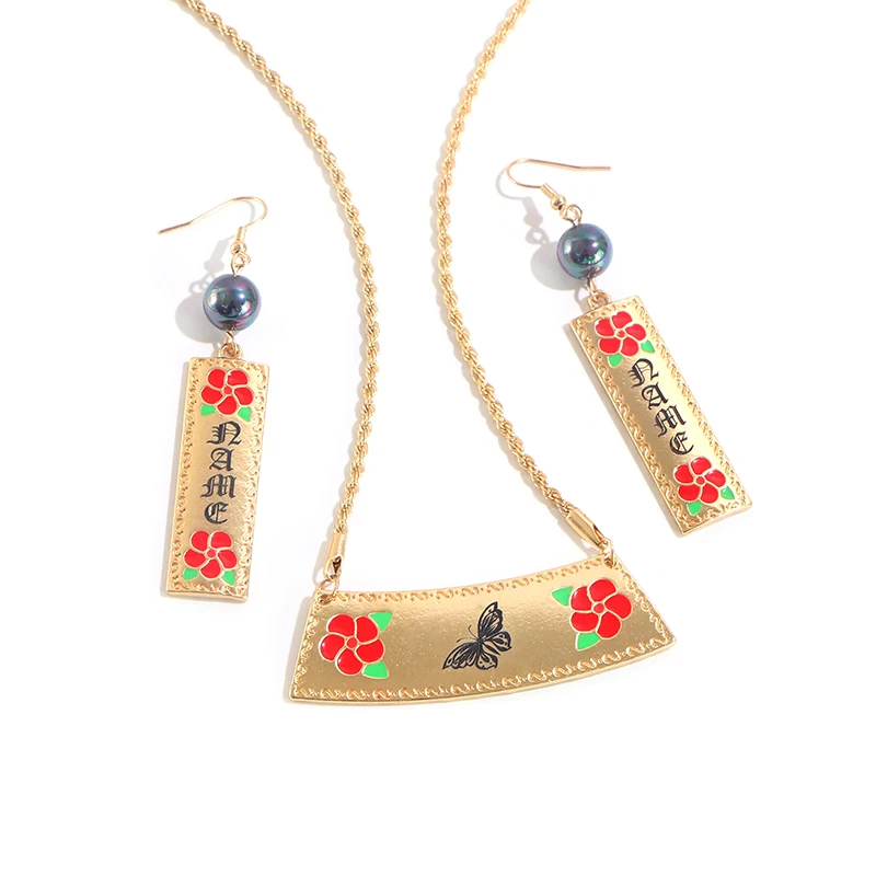 Коми может пользовательское имя полинезийская в гавайском стиле Marshall красный Плюмерия зеленых листьев ожерелье серьги на крючках стеклянные жемчужные женский Ювелирный Комплект